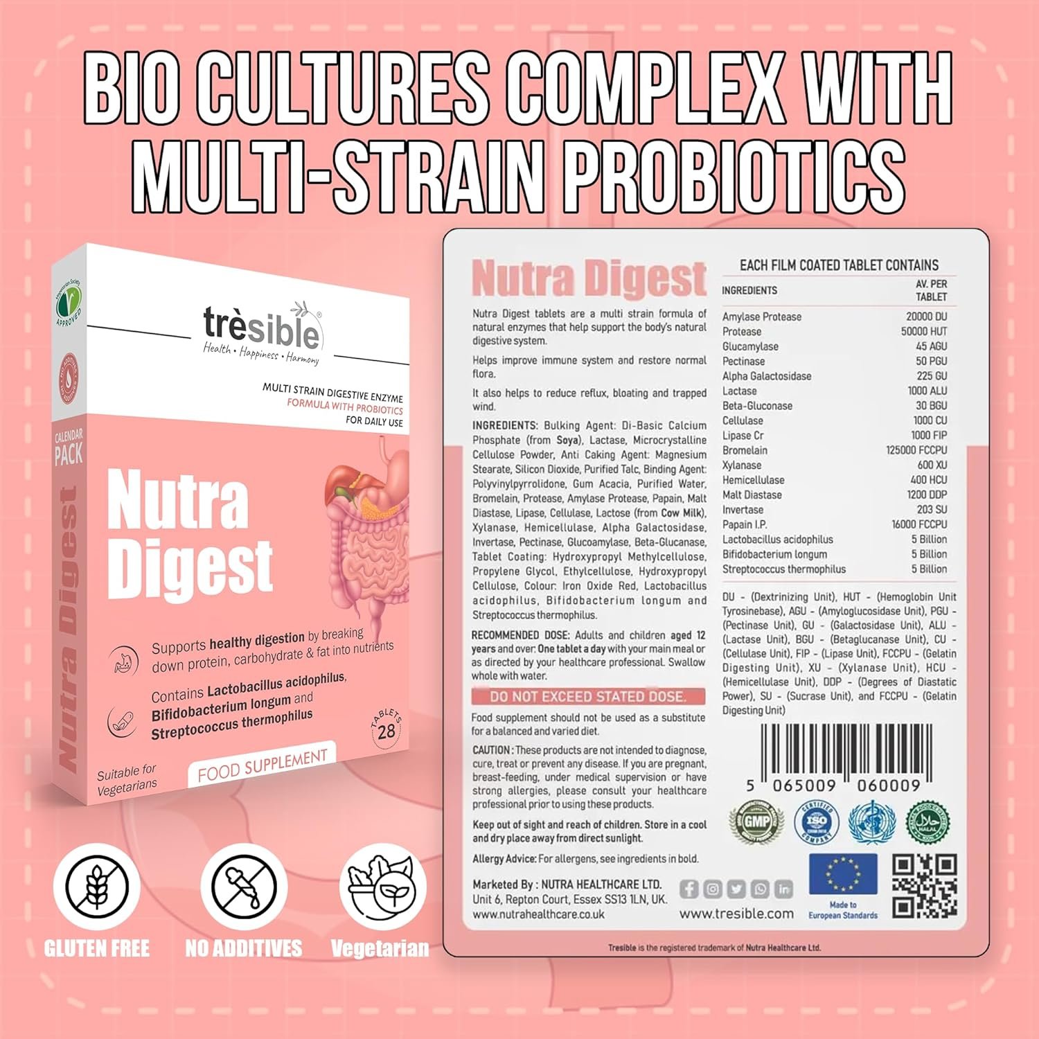 Gut health supplements support your daily digestive health with a multi-strain formula, developed for both men and women seeking effective gut support. These travel bloating tablets include powerful strains such as lactobacillus and bifidobacterium longum, working in harmony to promote a balanced gut microbiome. With added digestive enzymes, they help improve nutrient breakdown and absorption while supporting smoother digestion. Designed for daily comfort, they are ideal anti bloating tablets for men looking to relieve abdominal pressure and maintain regularity. Women can benefit from targeted gut care through these effective womens probiotics, especially during times of dietary change or digestive discomfort. The formulation also works as gentle yet effective constipation tablets, promoting healthy bowel movements without harsh effects. Each tablet of probiotics for men offers a convenient and consistent dose for bloating tablets, making it easy to maintain digestive balance at home or on the go. Pro bio cultures complex probiotics are ideal for men seeking comprehensive digestive support. It’s also a smart choice for those in need of complete gut repair for men, supporting gut health with just one daily tablet. Individuals with IBS may find relief using these ibs tablets for bloating and gas relief, which help reduce discomfort and support digestive regularity. Maintain your wellness routine with the best bloating relief and belly reduction solution, trusted by regular users. High strength probiotics also provides bloated stomach relief women can rely on, and is safe and suitable for children, making it an excellent option for travel probiotics for kids. Strengthen your gut daily with our reliable acidophilus tablets for effective and lasting digestive support.