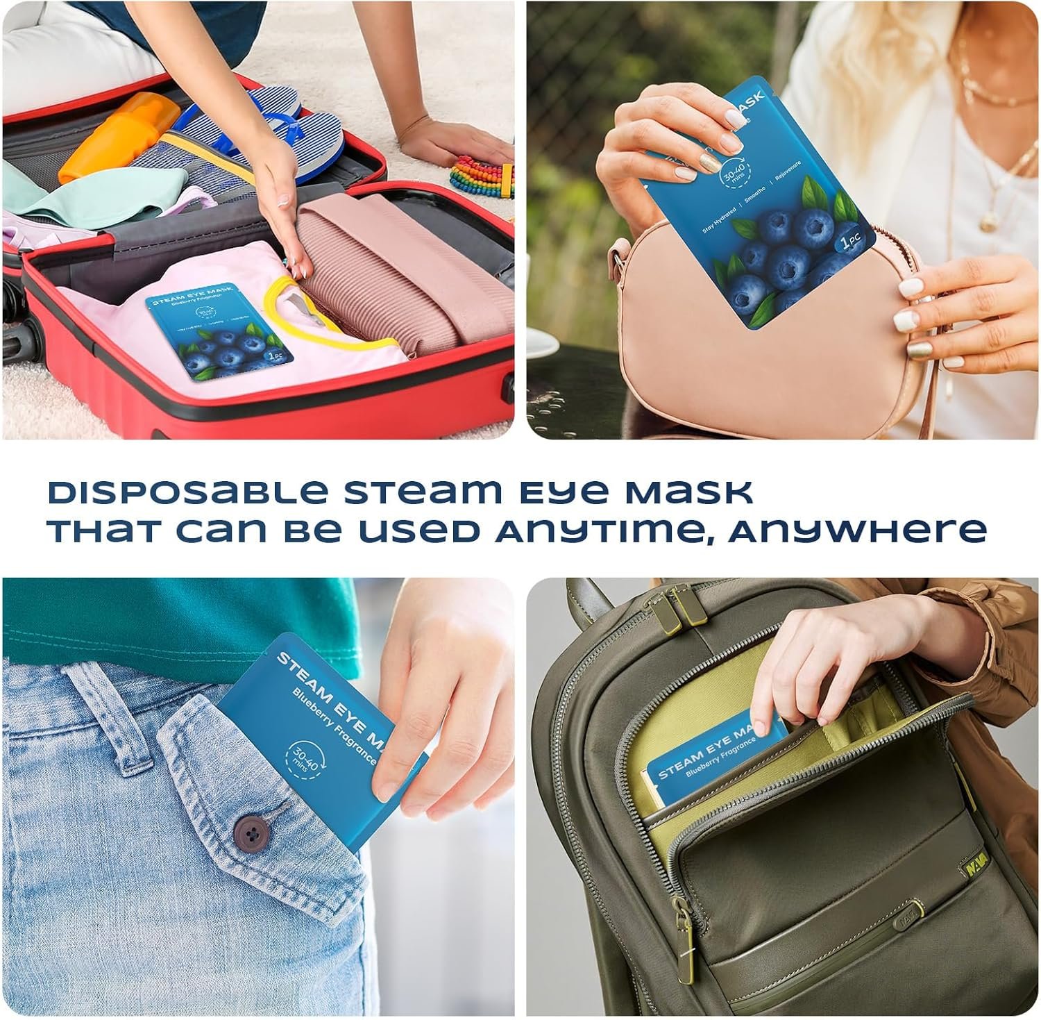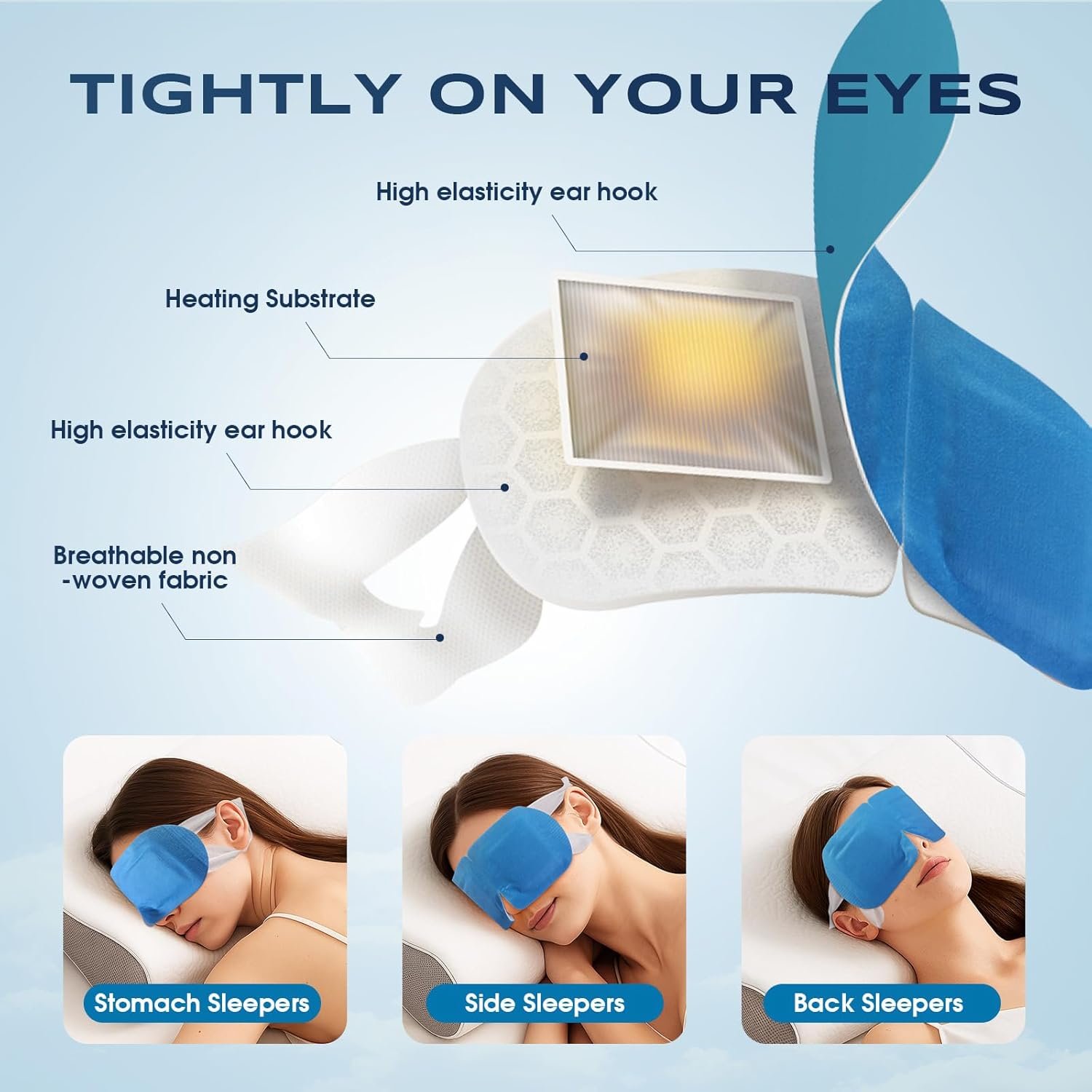【Fits All】 Comfort is key. Our heated eye compress mask is made of soft non-woven fabric, comfortable to wear, and skin-friendly. The ear loops of the steam eye mask have good elasticity, conform to your face and eyes, suitable for all kinds of people, including adults and children, men and women, office, home, school, on the road etc.
