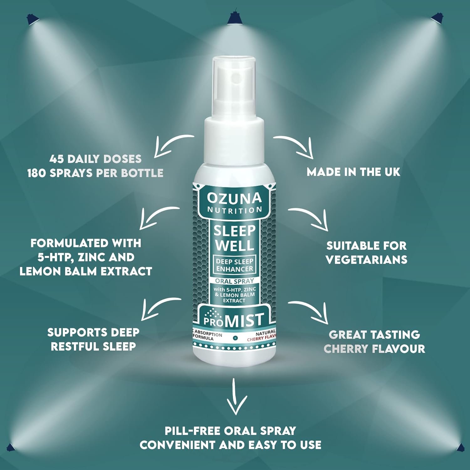ProMIST Sleep Well Oral Spray with 5-HTP, Zinc & Lemon Balm Extract – Supports Rejuvenating Deep Restful Sleep – Pill-Free Sleep Support – UK Made – 45 Doses – Cherry Flavour