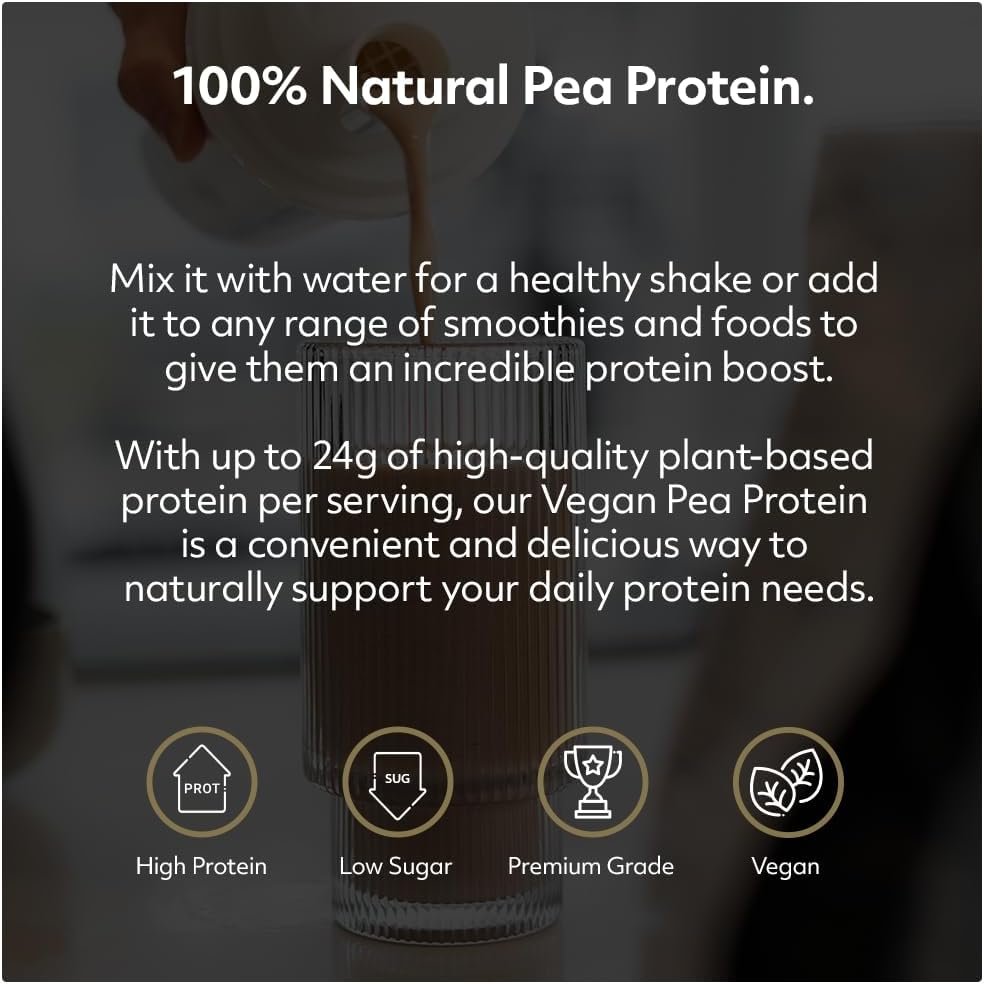 PREMIUM PEA PROTEIN ISOLATE: Our ultra-pure pea protein delivers an impressive 24g of complete plant protein per serving. Sourced from golden yellow peas and carefully isolated for maximum protein content and superior digestibility, perfect for plant-based nutrition.
