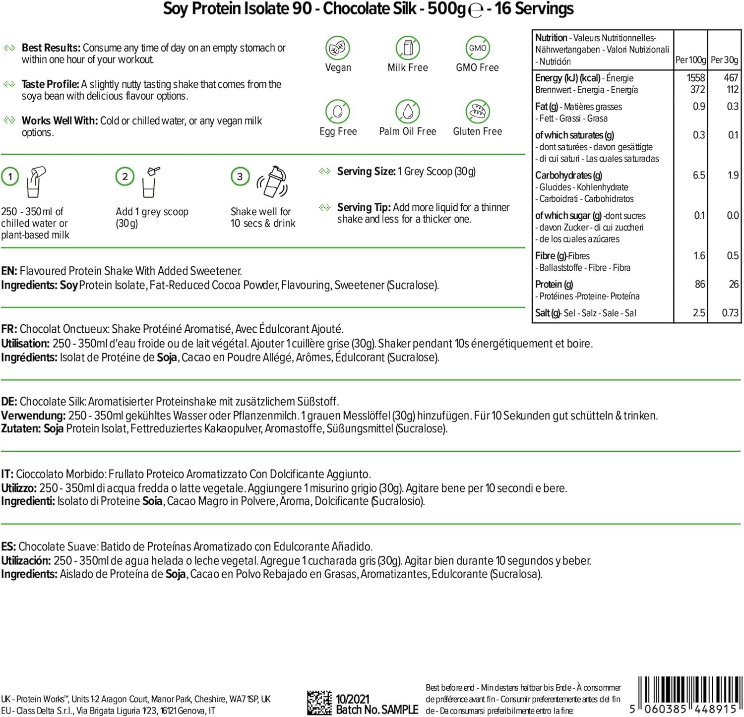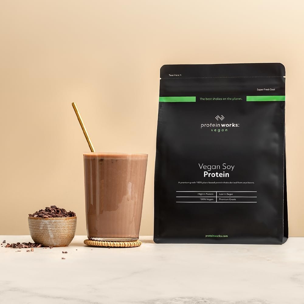 Protein Works – Vegan Soy Protein, Premium Soy Protein Isolate, Low Fat, No Added Sugar, 27g Protein, 100% Plant-Based Nutrition, Chocolate Silk, 16 Shakes, 500g