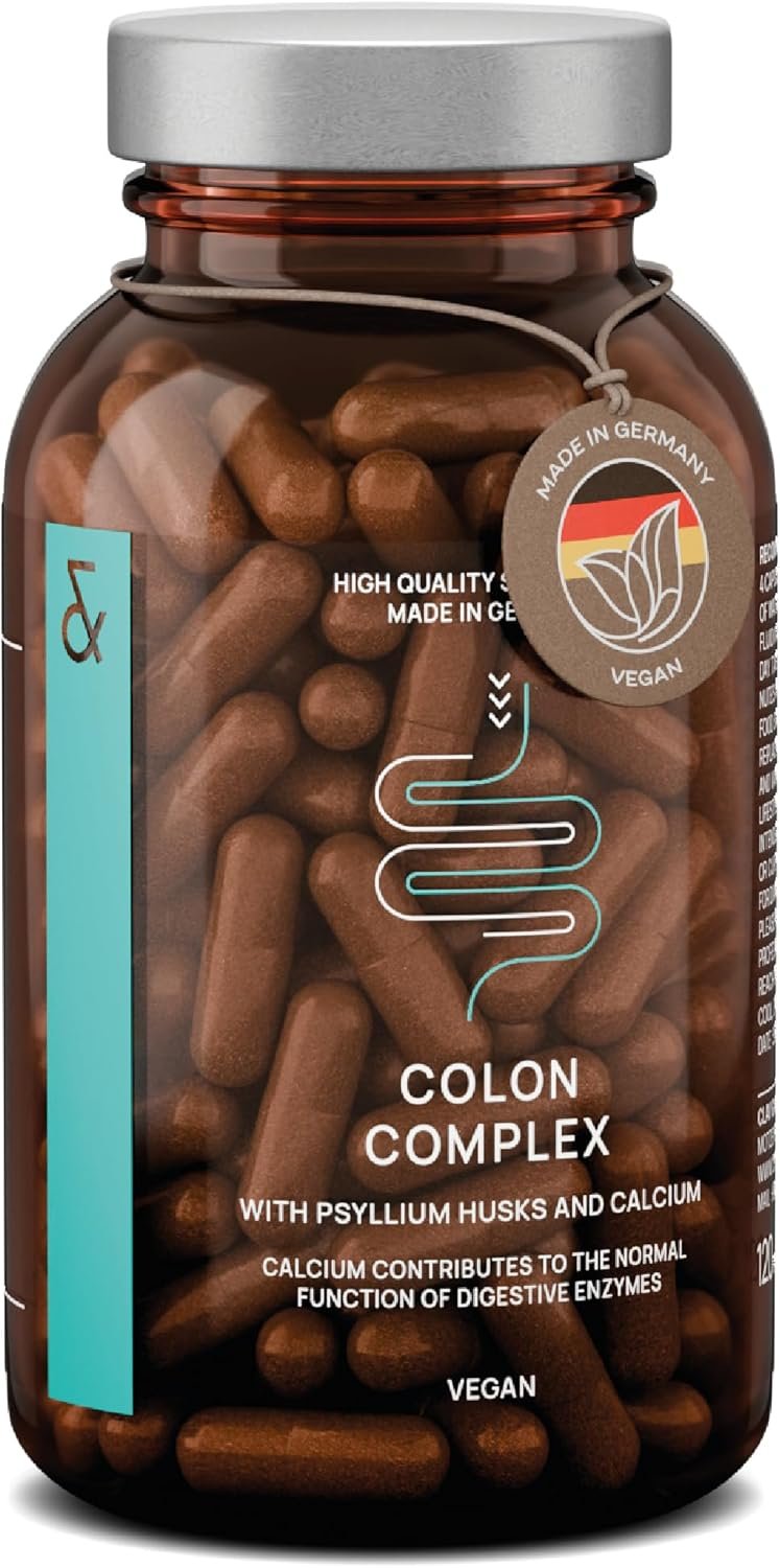 Psyllium Husks Capsules – 2200mg Soluble Fibre Supplement per Serving – Colon Complex with Fennel, Caraway Extract & Calcium – 120 Vegan Capsules – Made in Germany