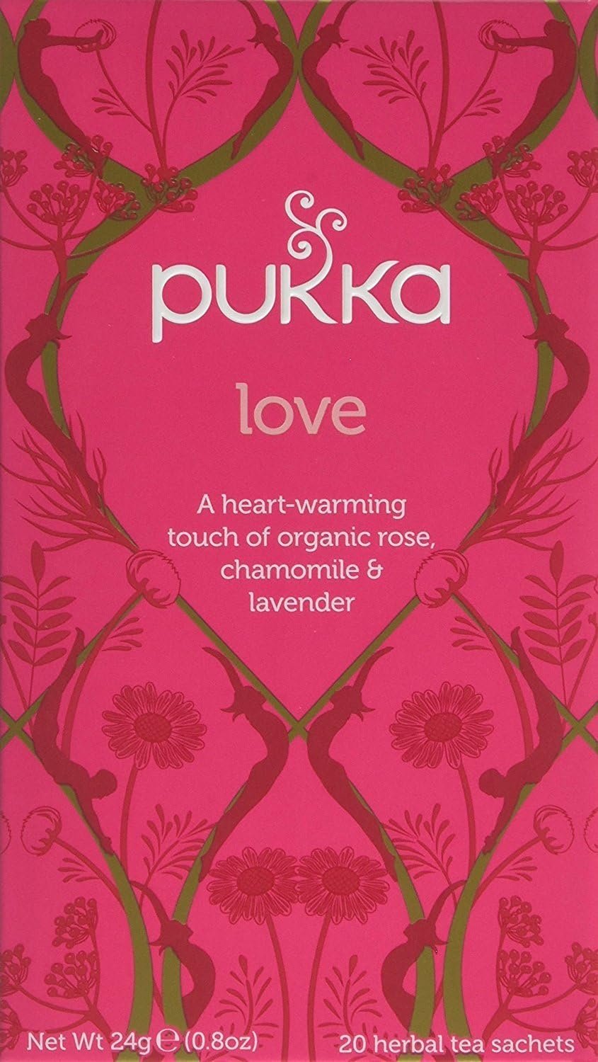 Pukka Herbs | Love Organic Herbal Tea Box | Chamomile, Lavender and Rose | Perfect For Uplifting Spirits | Caffeine Free | 4 Packs | 80 Plant Based Biodegradable Tea Bags