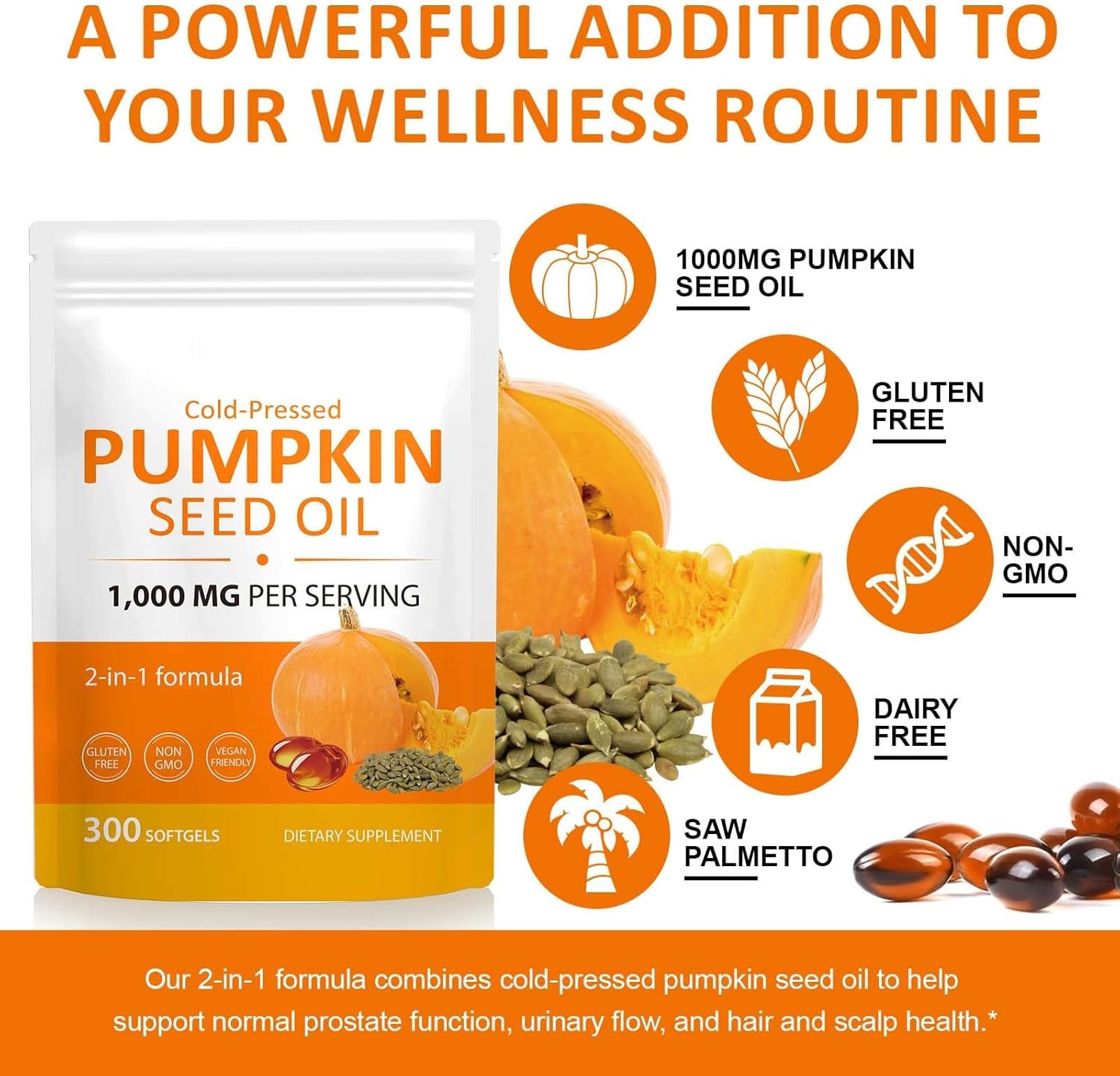 💇【Pumpkin Seed Oil for Hair Growth】Our pumpkin seed oil capsules feature a scientifically formulated 2-in-1 composite formula that works synergistically to strengthen and nourish hair follicles, enhance nutrient absorption, increase hair strength, reduce hair loss, and promote scalp health, thereby maximizing hair revitalization.