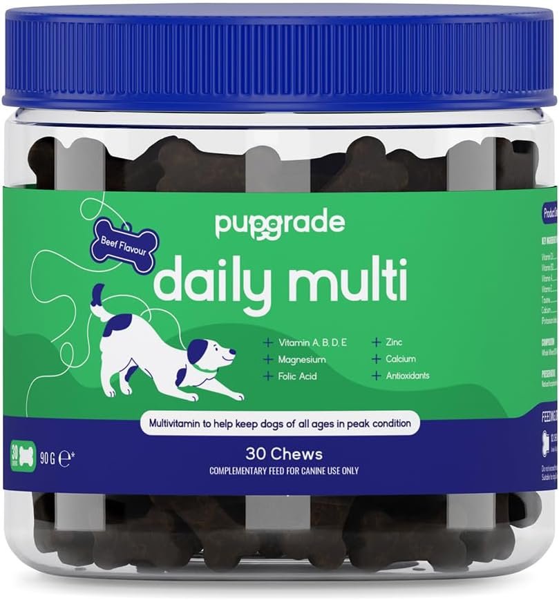 PupGrade Daily Multivitamin for Dogs – All-in-One Supplement for Digestive, Immune, Skin and Coat Health – 32 Healthy Nutrients, Probiotic Enzymes, Omega Fish Oil, Vitamins A, C, D & E – 30 Soft Chews