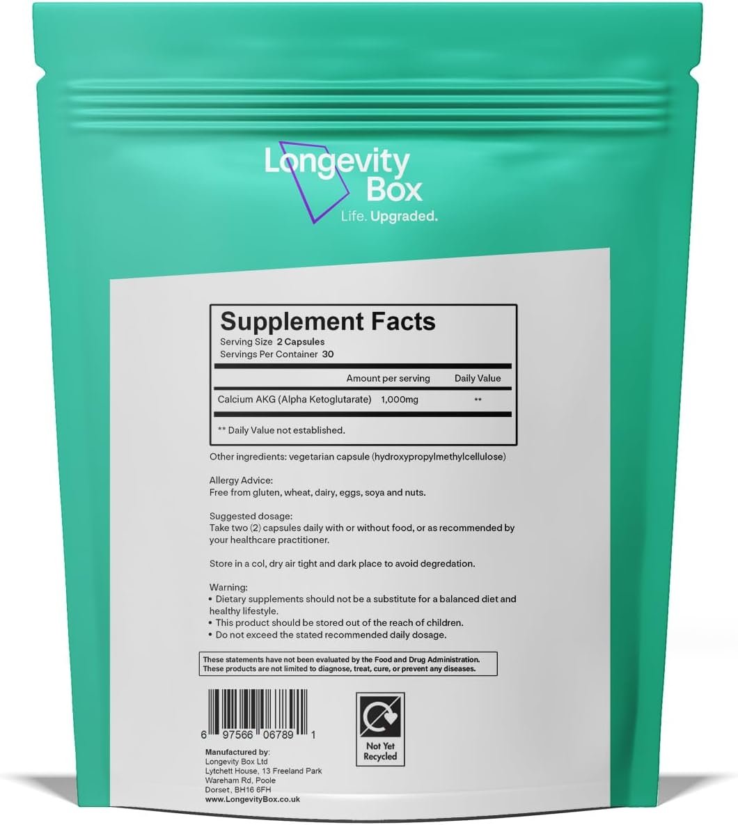 Promotes Healthy Aging & Longevity – Backed by research in age-related decline, Ca-AKG helps maintain DNA integrity, reduce systemic inflammation, and support optimal metabolic function.