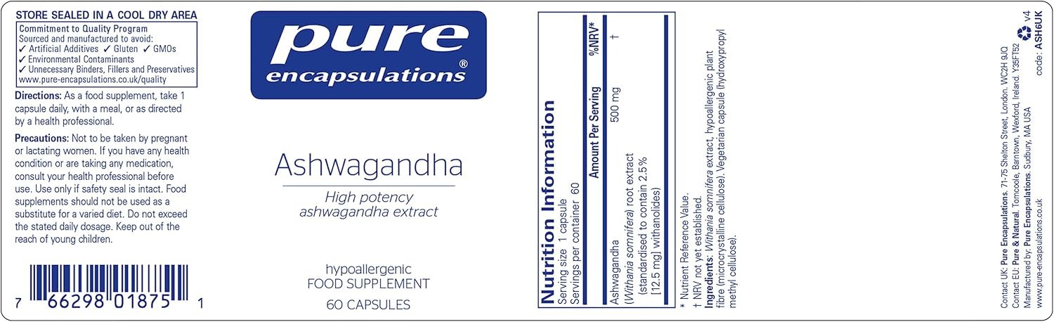 Pure Encapsulations Ashwagandha High Potency Extract 500mg – Indian Ginseng Supplement for Cognitive & Joint Function, 60 Vegetarian Capsules