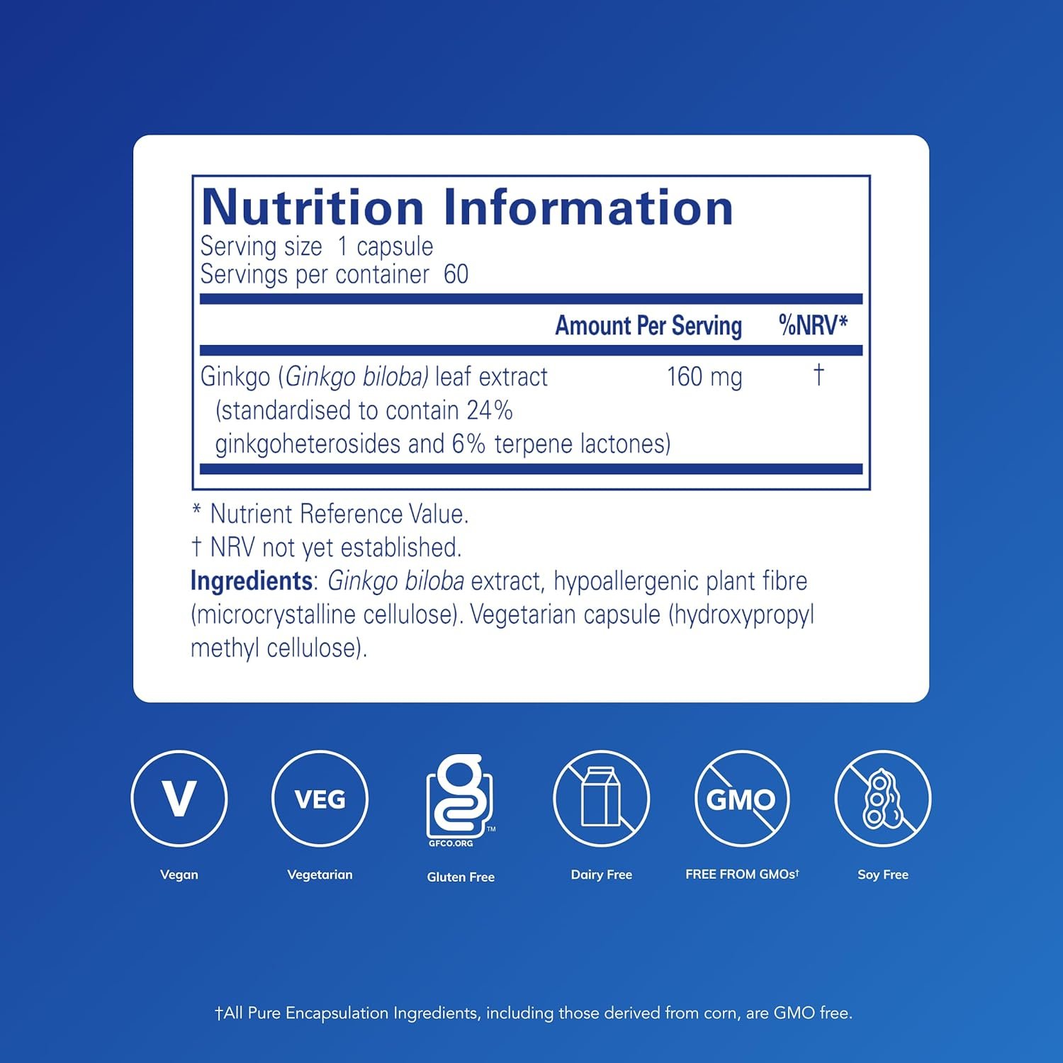 Pure Encapsulations Ginkgo 50 160mg – Hypoallergenic Ginkgo Biloba Extract Phytonutrient Supplement – 60 Capsules