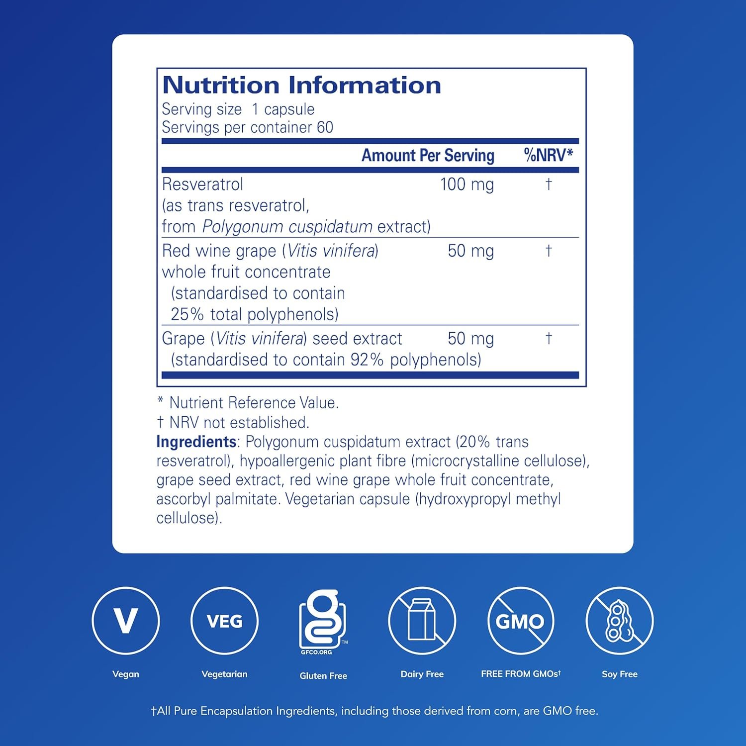 Pure Encapsulations Resveratrol Extra 100mg – Resveratrol with Grape Seed Extract and Red Wine Polyphenols – 60 Capsules