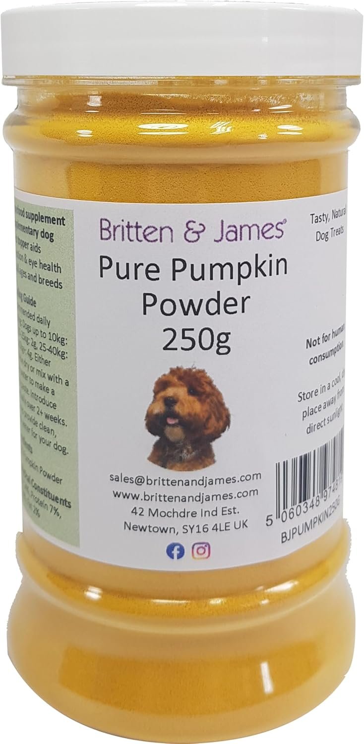 Pure Pumpkin Powder for Dogs by Britten and James (250g). Natural Grain Free Superfood Supplement – High in Prebiotics and Fibre for Digestion, Gut Health, Sensitive Stomach’s and Healthy Stools