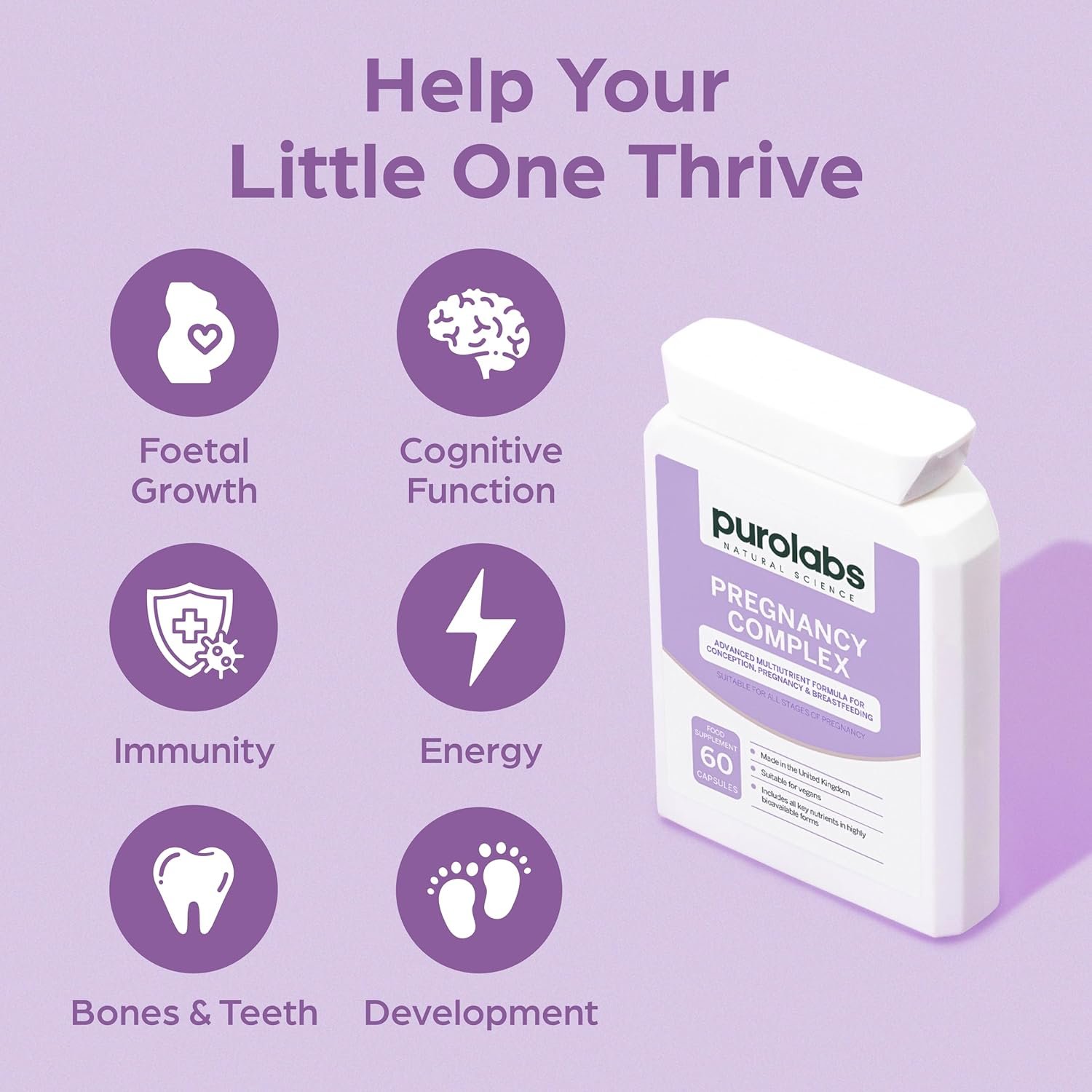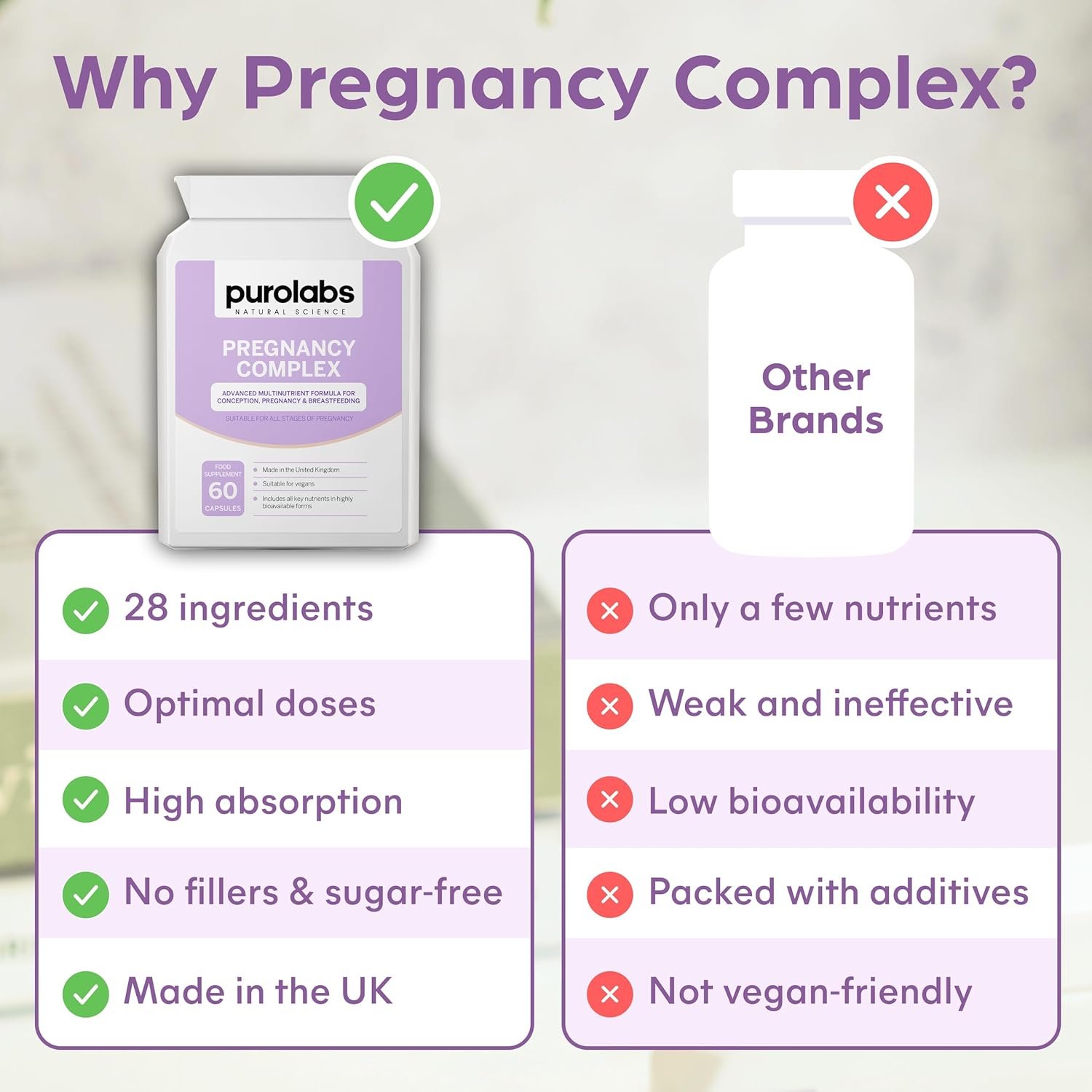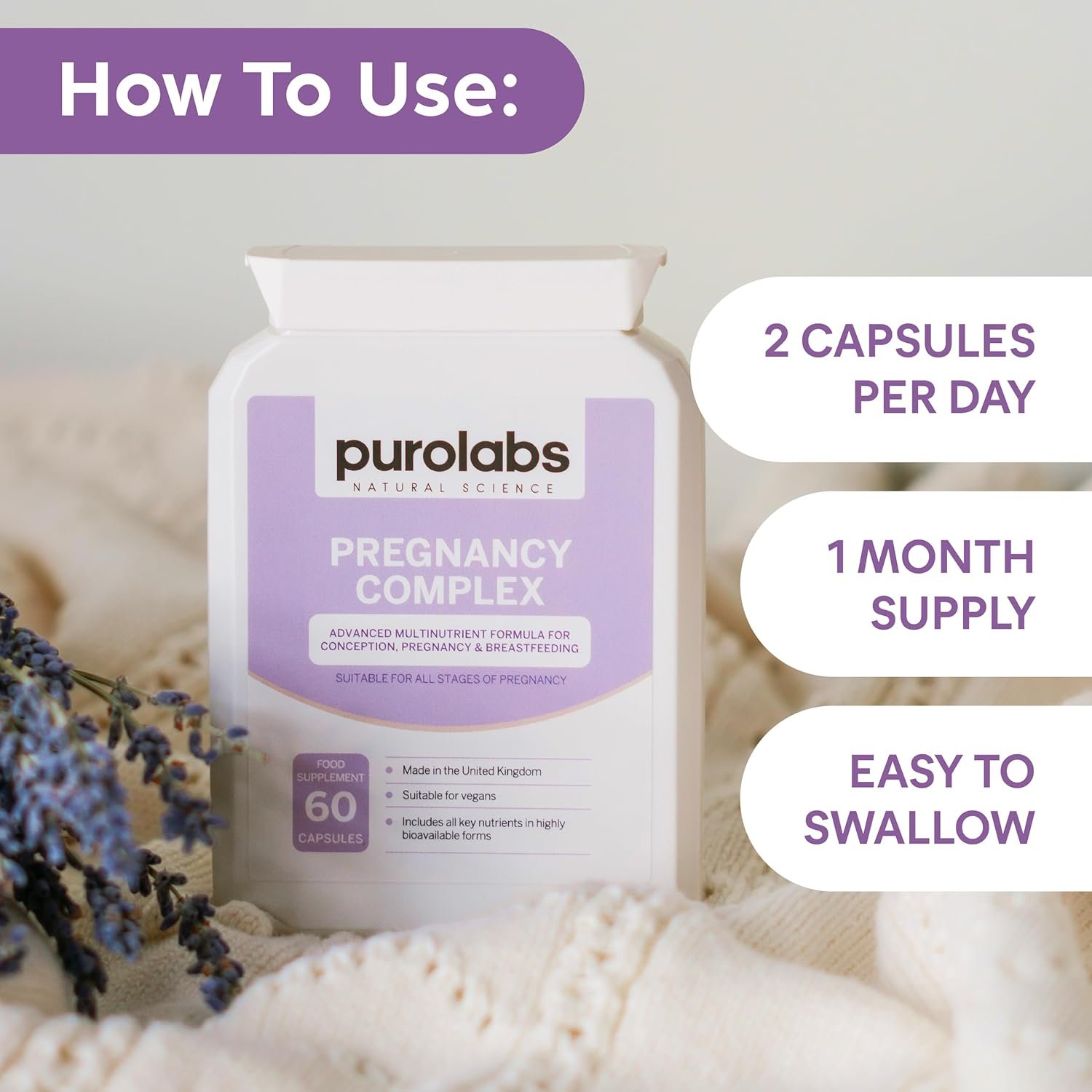 Purolabs Pregnancy Complex | Pregnancy Vitamins for Women with Folic Acid & Vitamin D | Prenatal Multivitamin for Pregnancy, Conception and Breastfeeding | 60 Vegan Capsules | Made in The UK