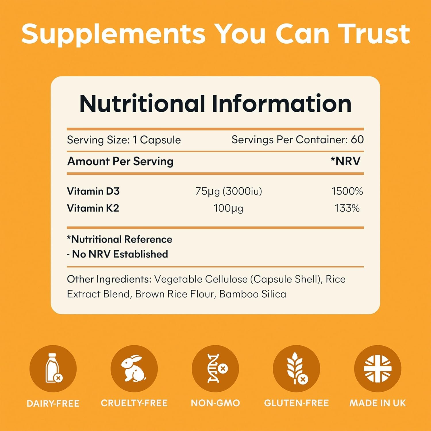 🇬🇧 UK-MADE PREMIUM QUALITY – Proudly crafted in the UK to strict GMP standards, our supplements are third-party tested for purity and potency. Trusted by thousands, this is your go-to for effective vitamin D3 and K2 supplements.