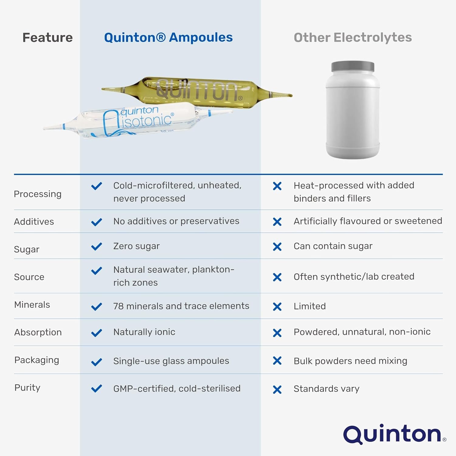 Hydrate electrolytes daily with mineral rich seawater, cold microfiltered for purity and safety. Quinton Isotonic supports normal electrolyte balance and natural hydration.