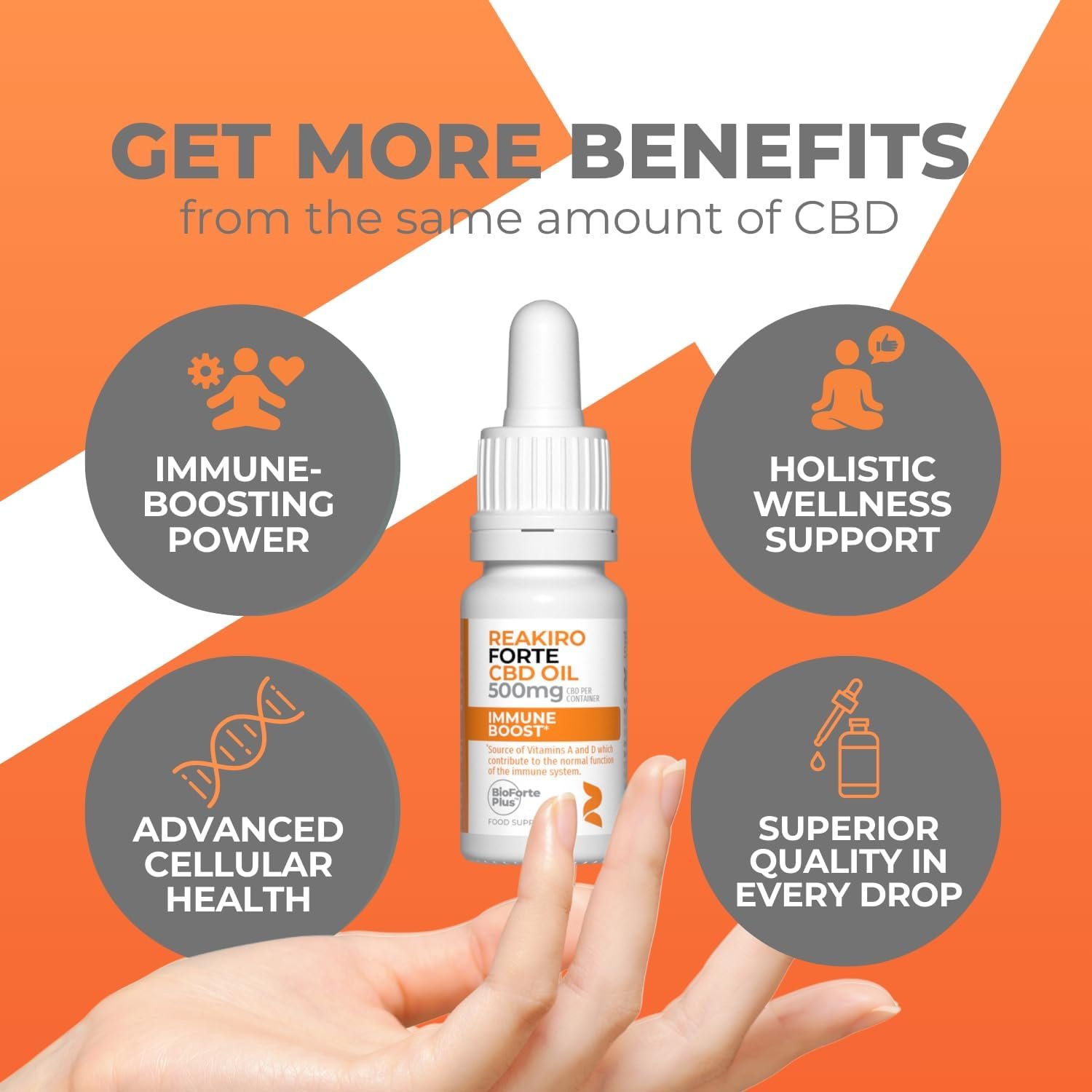 Produced in licensed HACCP/GMP facilities, Reakiro Forte CBD Immune Boost Oil with BioMax Forte is backed by clinical safety studies, ensuring you get a high-quality product you can trust. Thanks to its unique combination of ingredients, this oil provides a convenient, cost-effective way to boost your immune system.