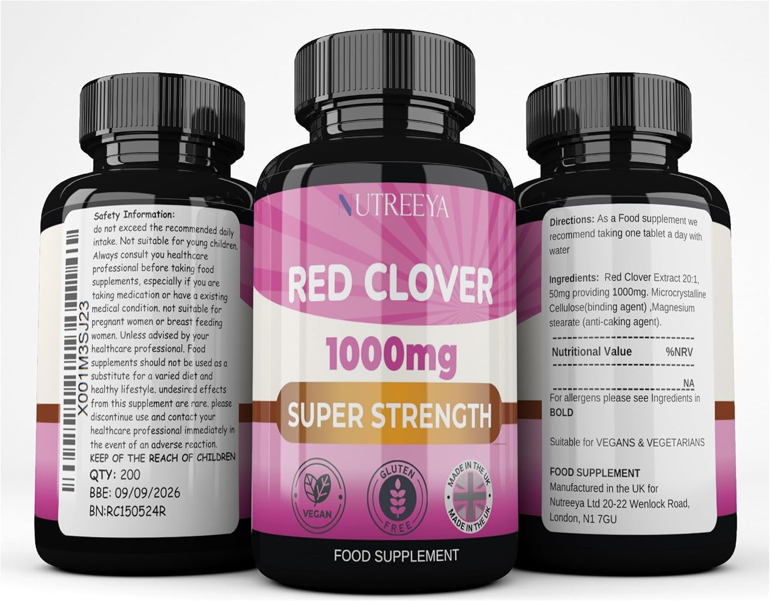 RED CLOVER 1000mg SUPER STRENGTH – 200 Vegan Tablets Our Great Value Red Clover Supplement Will keep you going for 200 days which makes this unbeatable value for money