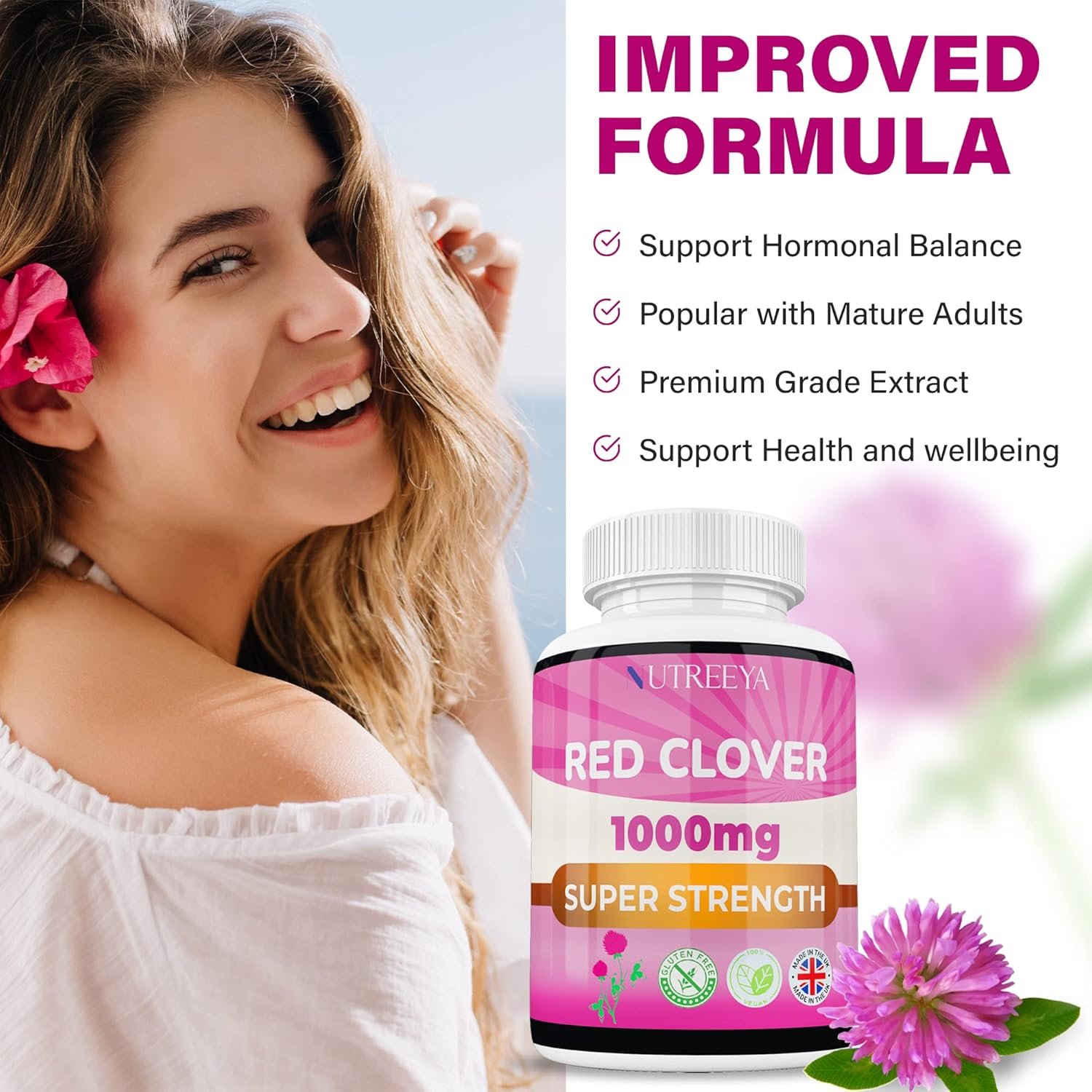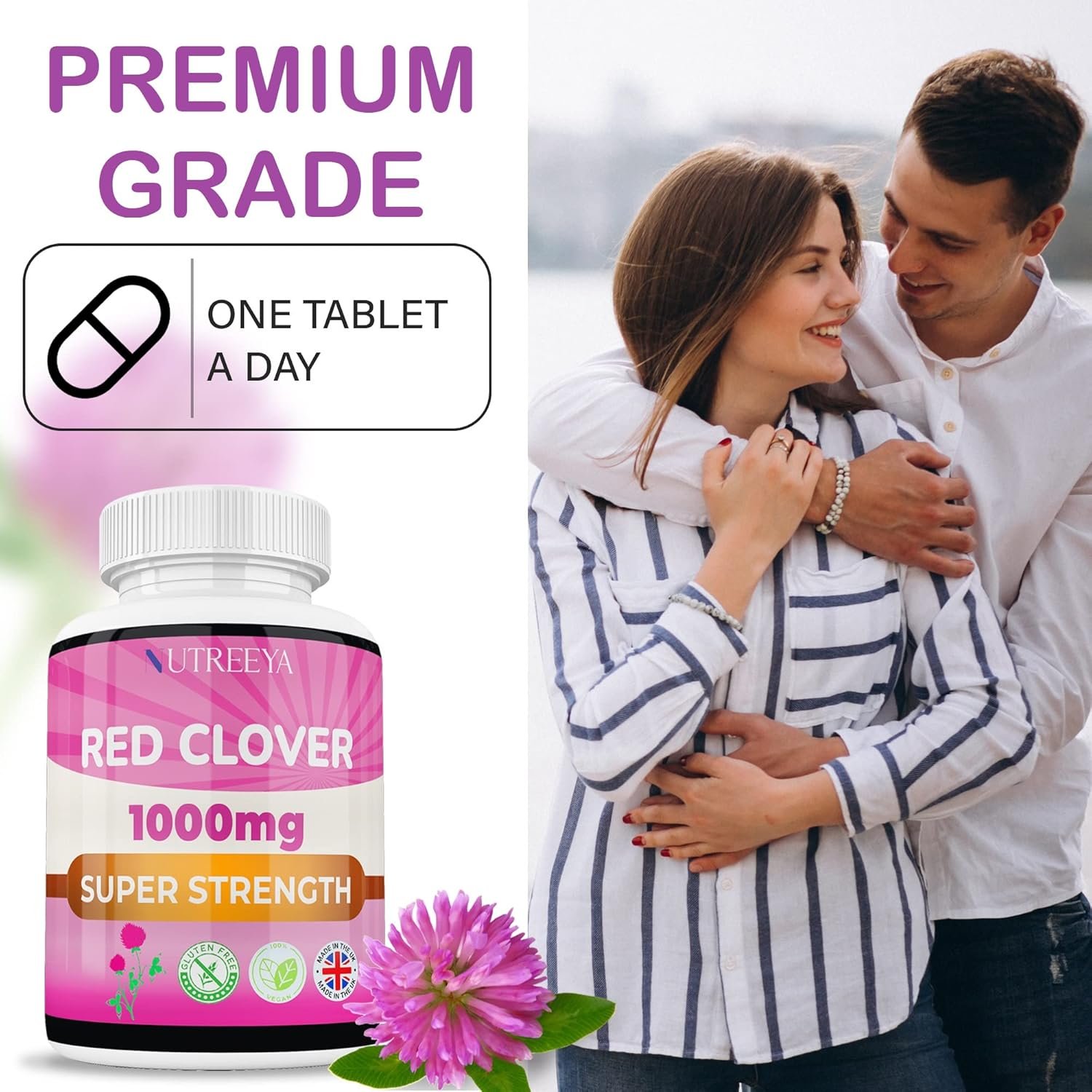 Red Clover Tablets 1000mg Vegan Tablets Super Strength Isoflavones Menopause perimenopause Supplement UK Manufactured