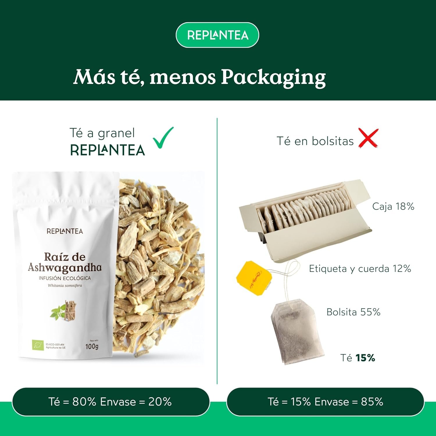 REPLANTEA Organic Ashwagandha Root Tea 100g | Adaptogenic Herbal Infusion for Stress Support | Natural Relaxation & Sleep Aid | Loose Leaf Withania Somnifera