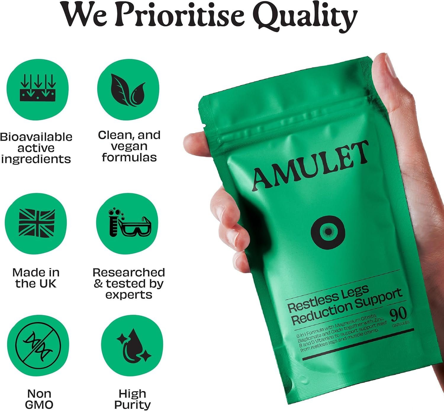 4. Better Than Sprays, Lotions or Quinine Tablets – Unlike magnesium sprays, creams or quinine tablets for leg cramps, Amulet capsule dose is well absorbed, and combined with a range of co-factors to specifically target restless legs.