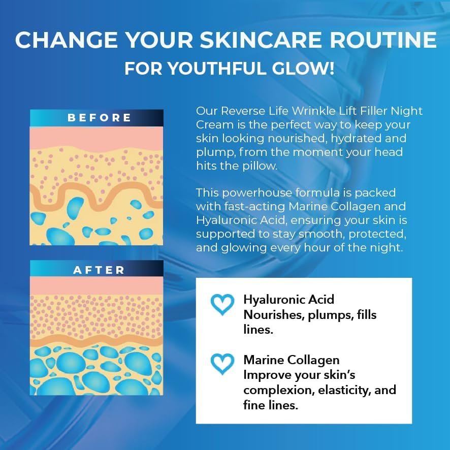 Reverse Life – Day Cream – Face Cream for Wrinkles with Lifting and Filling Properties – Contains Hyaluronic Acid, Marine Collagen & Retinol – 50ml