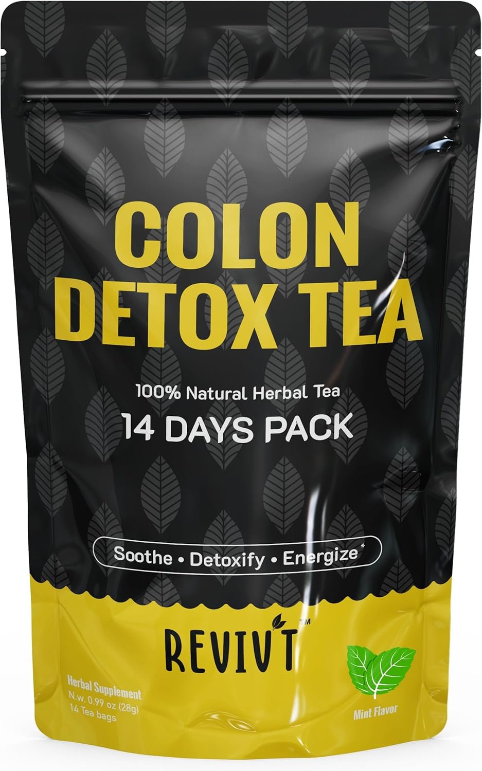 REVIVT Colon Detox Tea, All Natural Colon Cleanse Tea with Senna, Dandelion, Peppermint, Support Gut and Digestive Health for Women and Men, Non GMO, 14 Day Supply