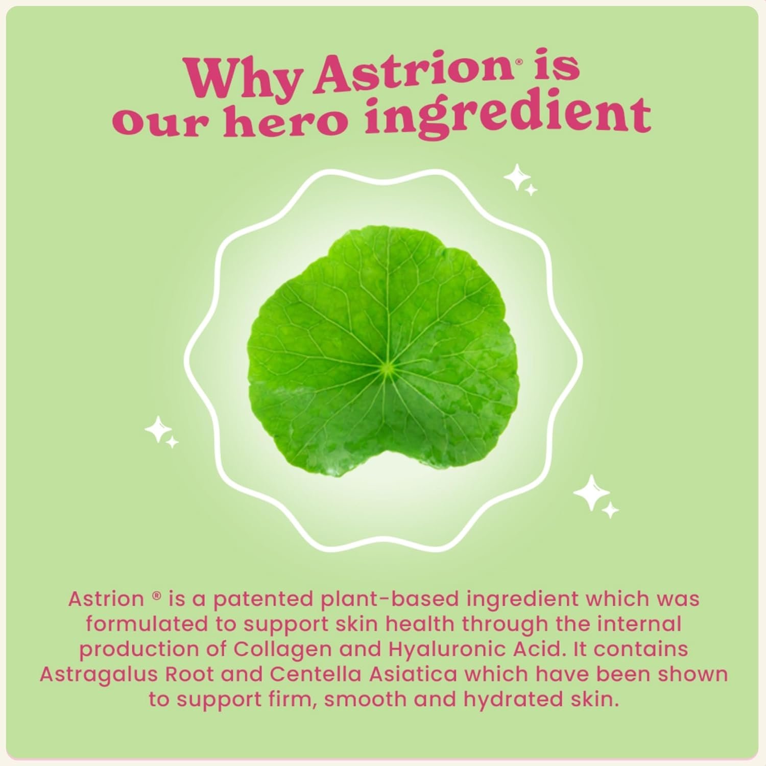 PLANT (COLLAGEN) POWER: Plant Collagen contains clinically studied ingredients, such as, Astrion that have been proven to increase our ability to produce more collagen and hyaluronic acid. This can improve skin hydration, promote hair growth, reduce fine lines and blemishes, and give you a natural daily glow. Each serving of Plant Collagen provides over 178% of your daily recommended intake of Vitamin C.