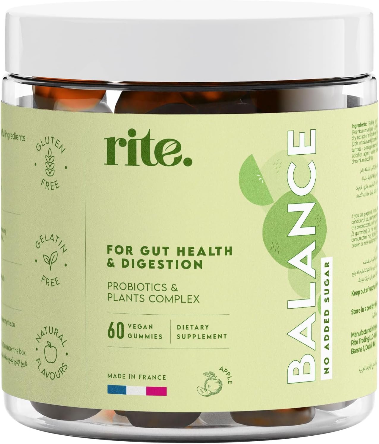 Rite Balance Probiotics Sugar Free Gummies, Gut Health, Digestion, Bloating Relief and Immune Support, Vegan, Apple Flavour (60 Count, 1 Month Supply)