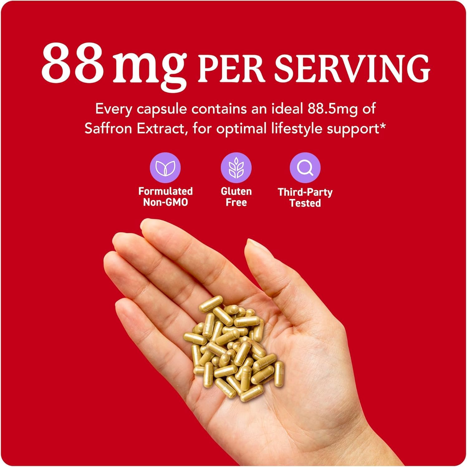 OPTIMIZED SAFFRON 88.5MG: Every one-capsule serving of our Saffron supplement contains an ideal 88.5mg of Saffron extract, ensuring optimal health and lifestyle support for both women and men.*
