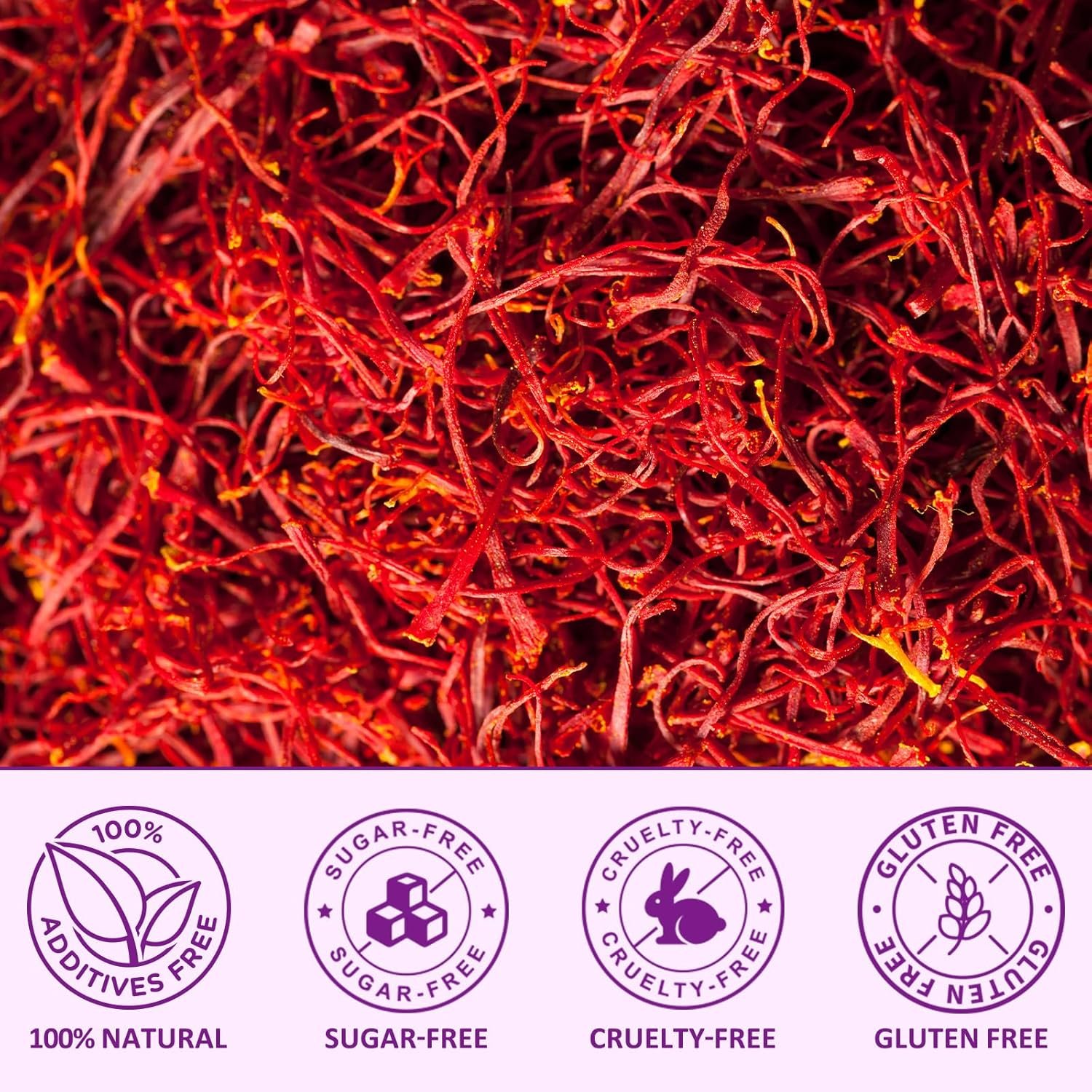 🌱 【Saffron High Strength Extract】Each serving contains 500mg of premium 4:1 Saffron extract, equivalent to 2000mg of raw saffron, for optimal potency and effectiveness