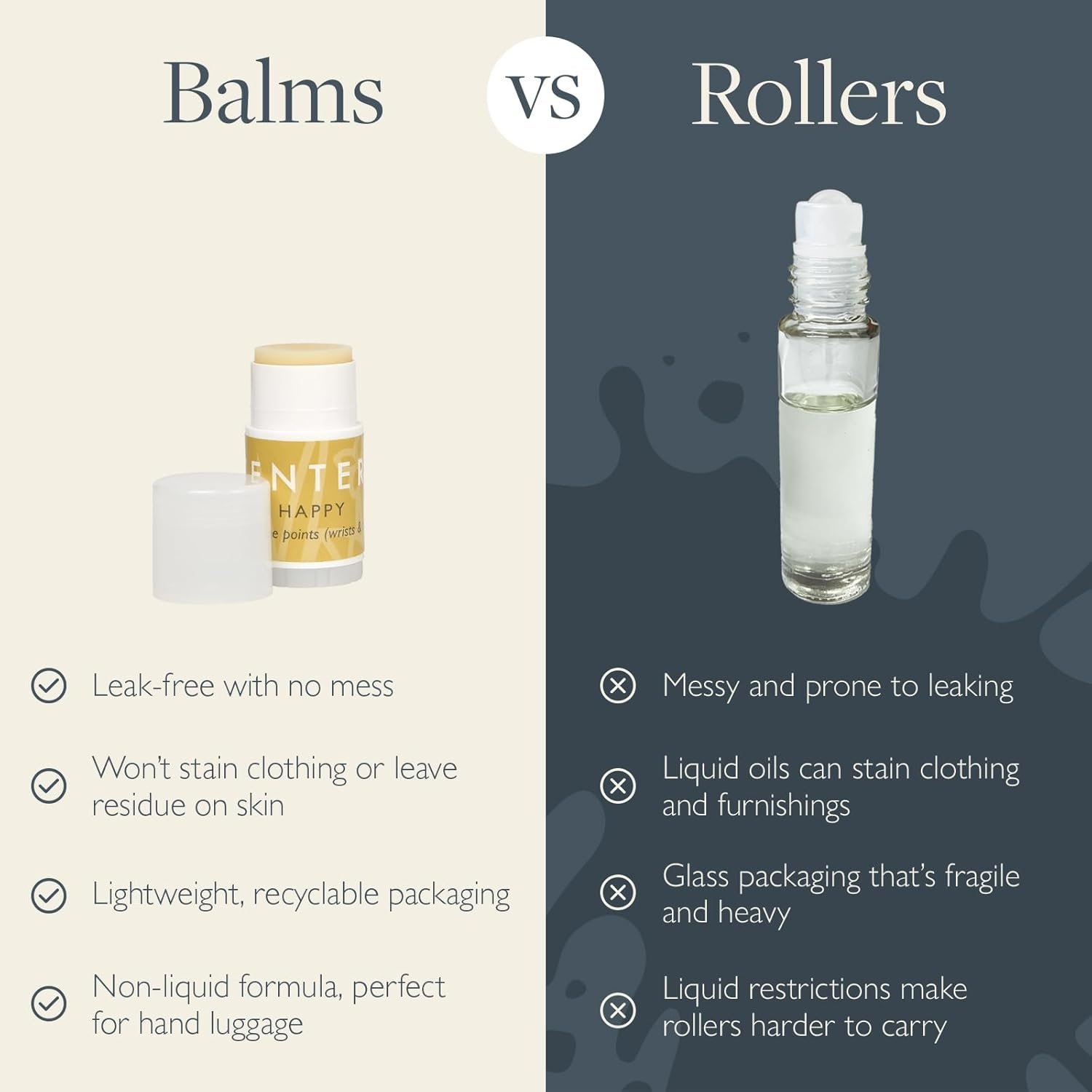 ON-THE-GO ESSENTIAL OILS, MESS-FREE – These pocket-size balms apply directly to pulse points, offering approx. 30 uses per balm. The solid balm format means no leaks or spills – unlike roll-ons – making them ideal for travelling, work, or bedtime routines.