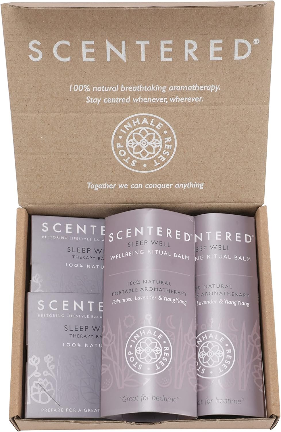 Scentered Sleep Well Aromatherapy Balm Saver Bundle – 2 x 5g Balms & 2 x Mini Travel Balms for Restful Sleep – Lavender, Clove, Rose, Chamomile, Ylang Ylang Essential Oils – Relaxing Gifts for Women