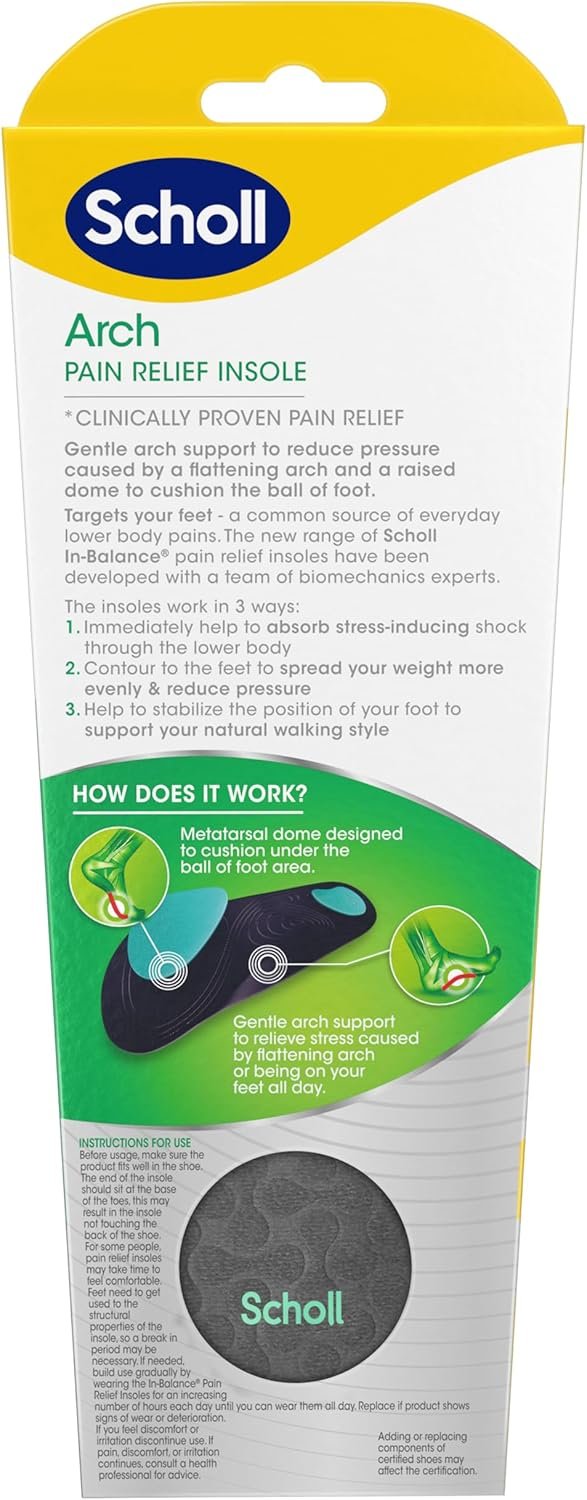 Scholl in-Balance Orthotics Plantar Fasciitis Pain Relief Insoles – 3-in-1 Insoles for Lower Back, Arch Support, Knee and Ankle Pain, 1 Pair