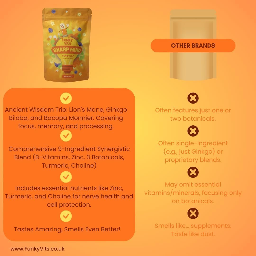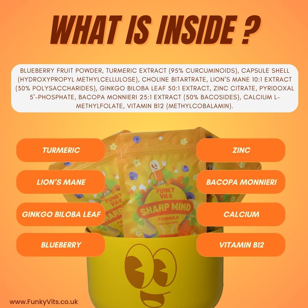 Sharp Mind – Cognitive Booster for Focus, Clarity | Support Energy, Mental Performance, Cognitive Function | Support Focus, Brain Health | Lion’s Mane Extract | Blueberry | UK Made | Vegan