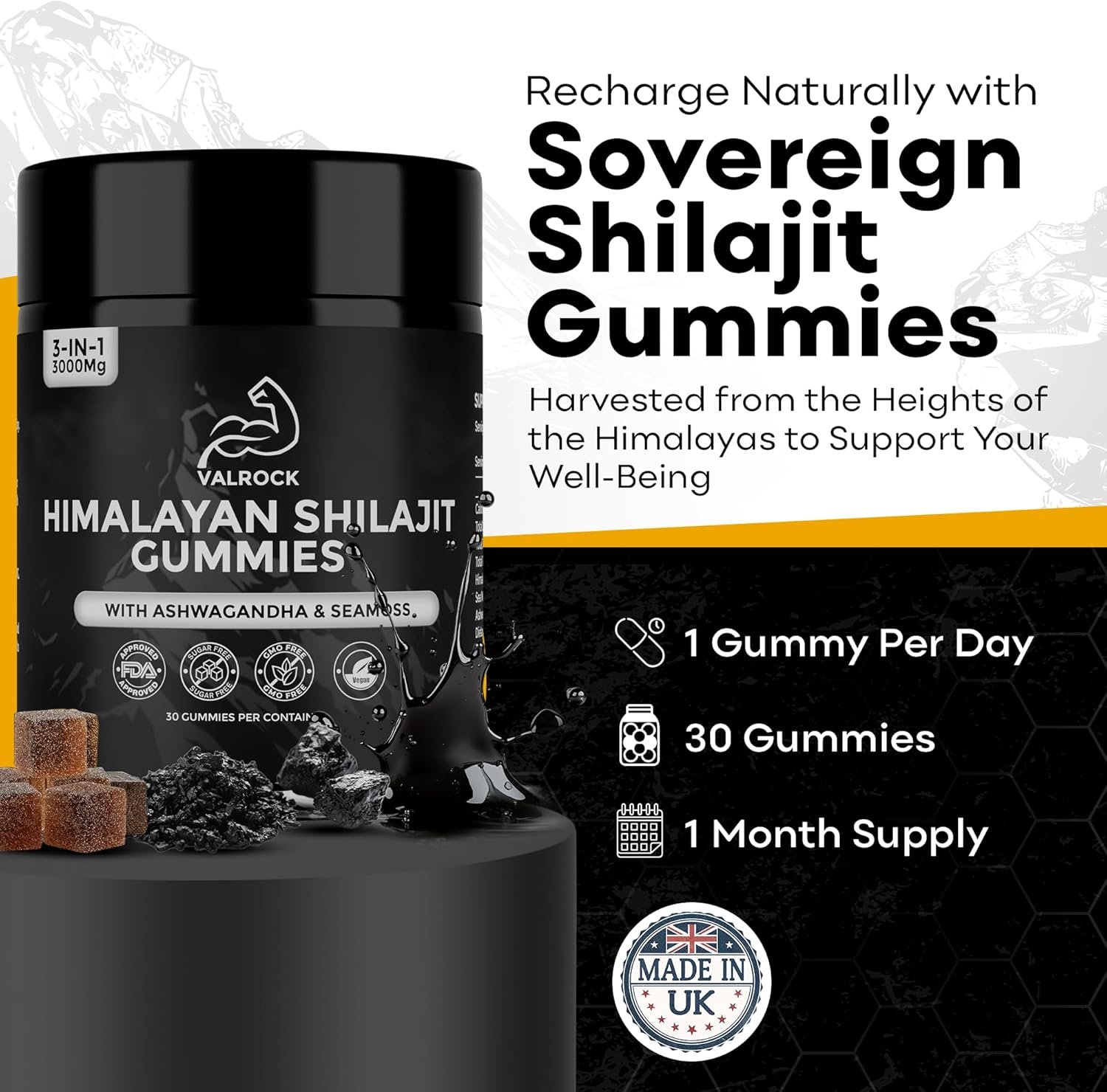 🌟 Potent Fusion: A powerhouse blend of Shilajit, Ashwagandha, and Sea Moss, crafted to deliver a holistic health boost with every gummy!