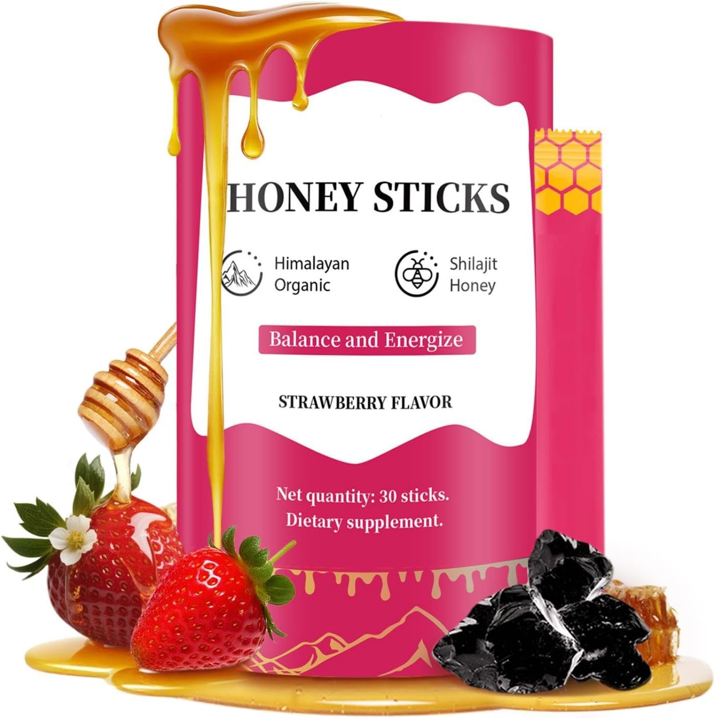 🌸 Designed for Women’s Unique Needs – A delicious strawberry-infused blend of Shilajit resin and raw honey, crafted to naturally uplift energy, promote hormonal harmony, and enhance daily vitality—perfect for active, health-focused women.