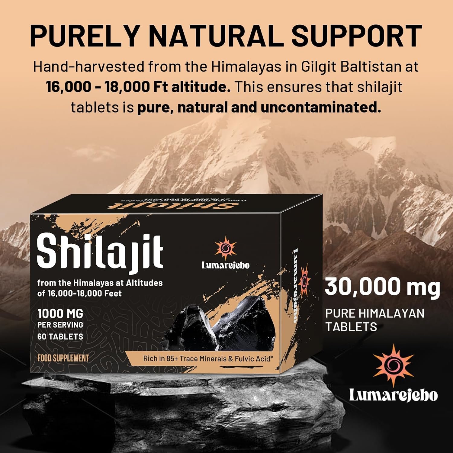 Quality You Can Trust: Lumarejebo is committed to providing premium Himalayan shilajit supplements. Savor authentic, pure Himalayan shilajit, made with no added sugar, coloring or flavouring, vegan-friendly and showcasing the natural, pure essence of Shilajit. Our Himalayan shilajit tablets are carefully manufactured in a strictly controlled factory environment ensuring purity and potency to provide you with an unparalleled health experience.