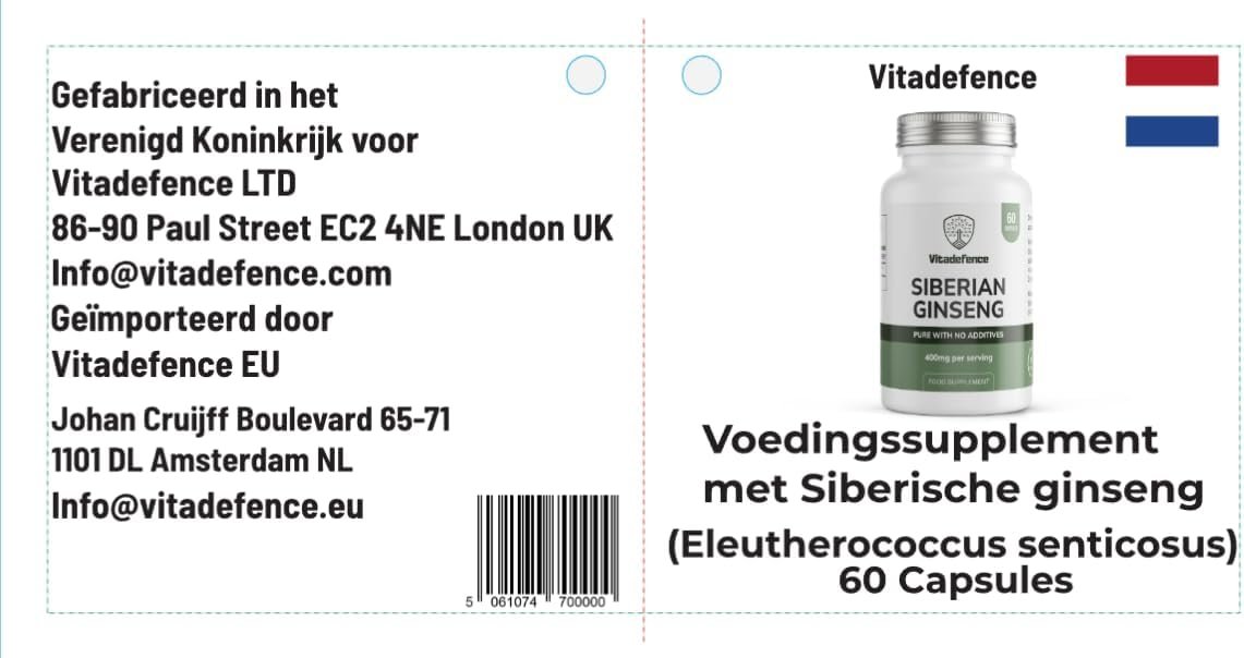 Siberian Ginseng 400mg – 60 Vegan Capsules Eleutherococcus senticosus Root Extract UK Made – Vitadefence