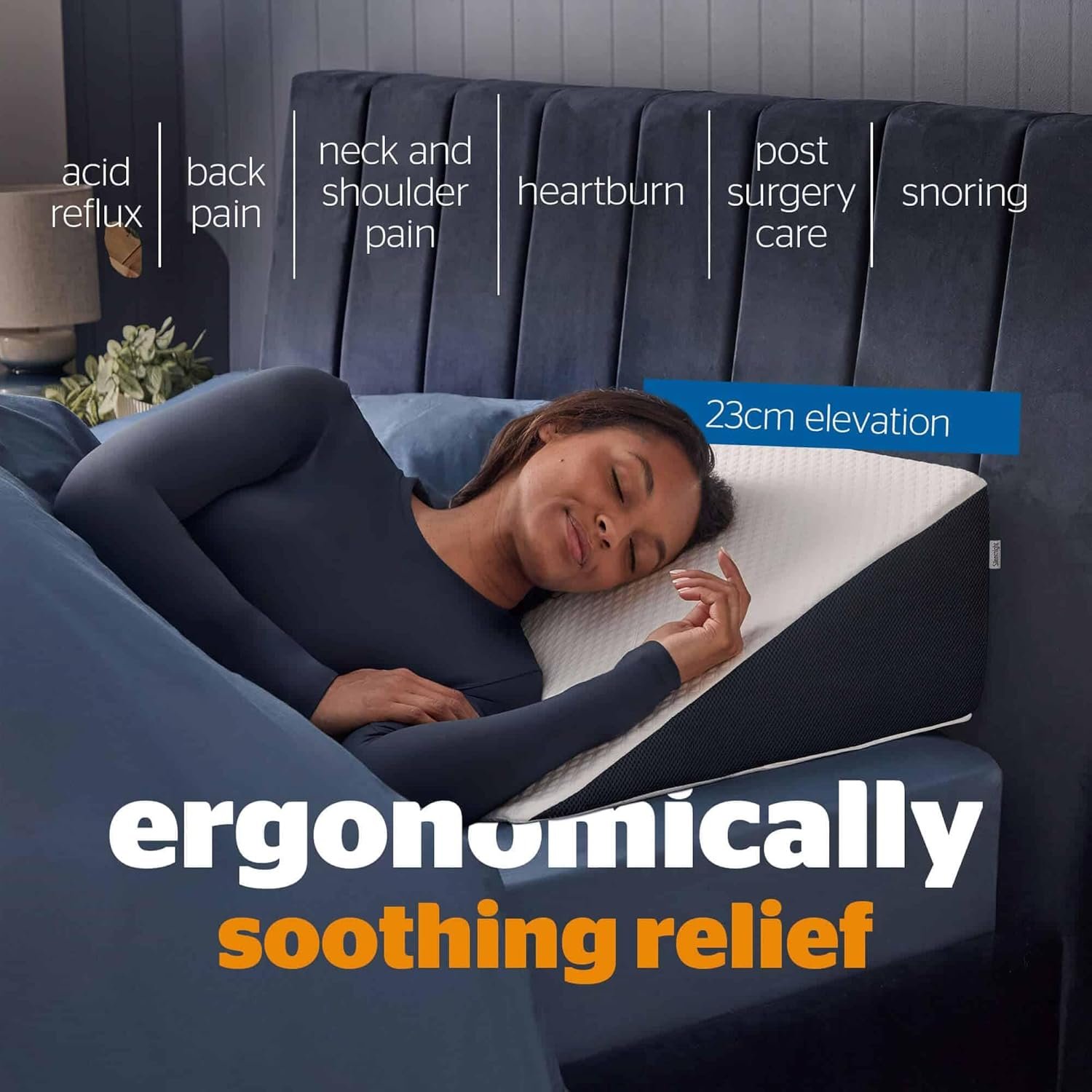 ERGONOMIC SOOTHING RELIEF: Ergonomically engineered to elevate the upper body, with an elevation of 23cm it is perfect for reducing heartburn and acid reflux symptoms, snoring, breathing issues, post-surgery support, and general bodily aches and pains.