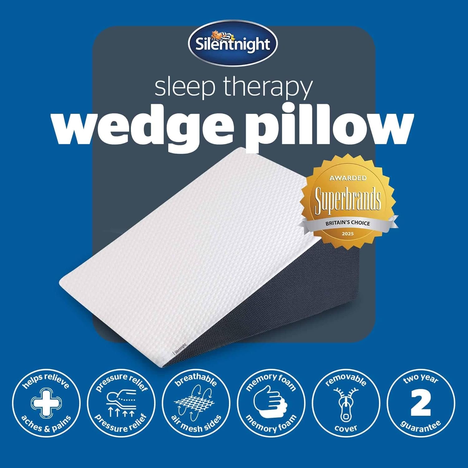 Silentnight Sleep Therapy Wedge Pillow – Memory Foam Ergonomic Soothing Relief – Reduce Aches and Pains Snoring Heartburn Acid Reflux – Post-Surgery Support – Sleeping & Sitting Multiuse Support