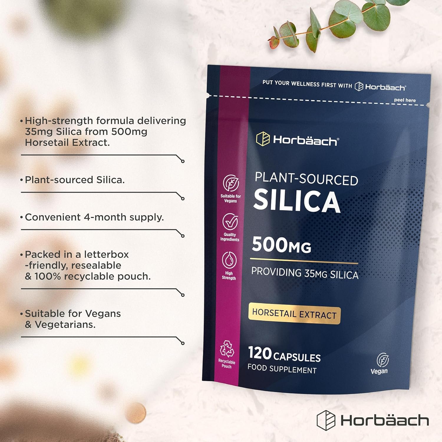 Silica Supplement 500mg | High Strength Silica from Horsetail Extract | 120 Powder Capsules | Vegan | 4 Month Supply | by Horbaach