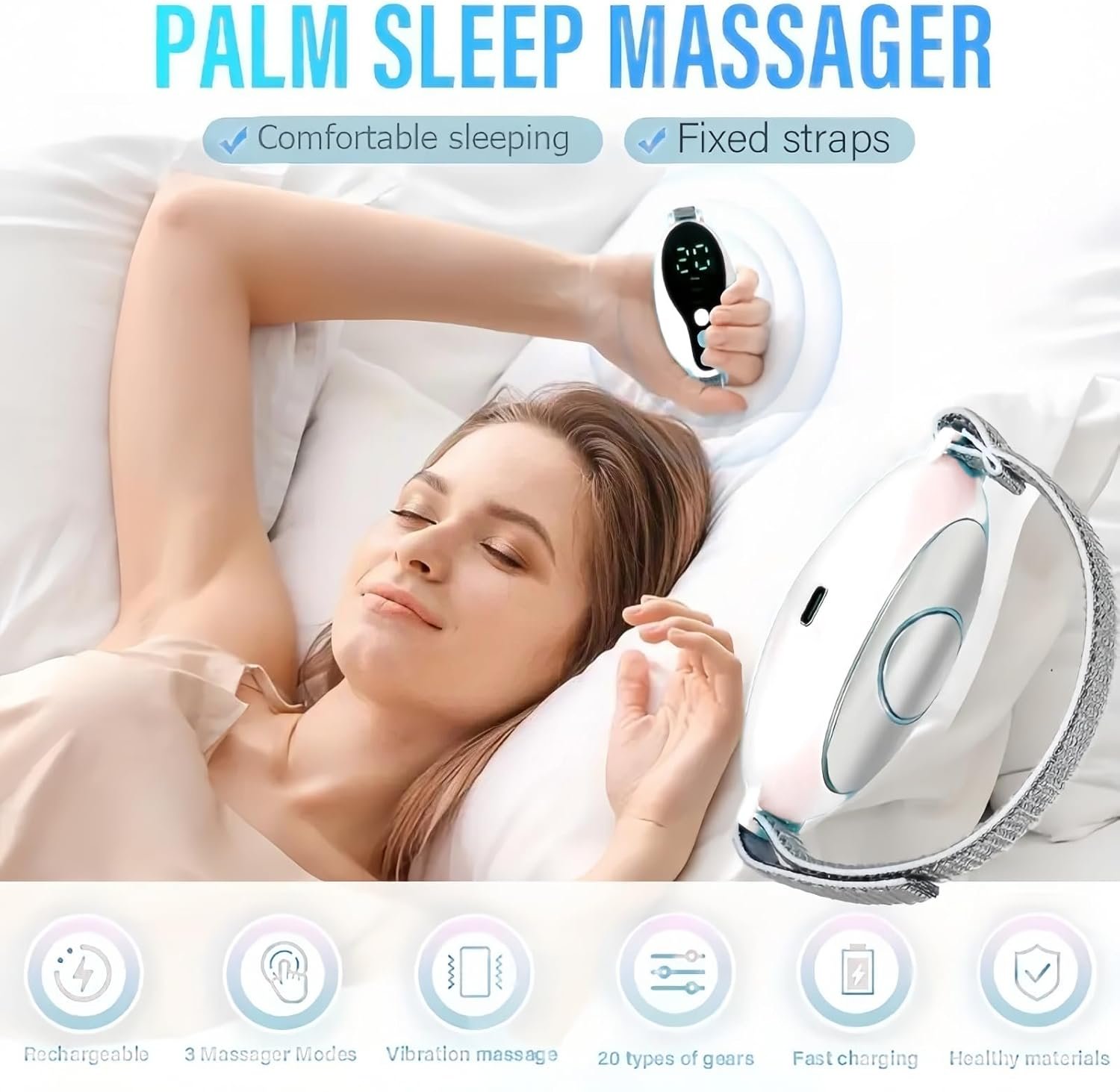 Sleep Aid Device for Adults,Anxiety Relief and Insomnia,Palm Sleep Massager,Portable USB Charging,Handheld Microcurrent Sleep Instrument with Comfortable Adjustable Strap,Sleep Support Tool