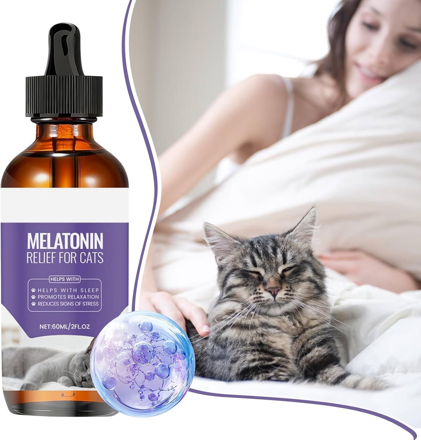 Sleep Aid for Cats,60ML Stress Relief Solution – Cat Sleep Supplement – for Health Tension Small Medium Large Breed Travel Home Night Time