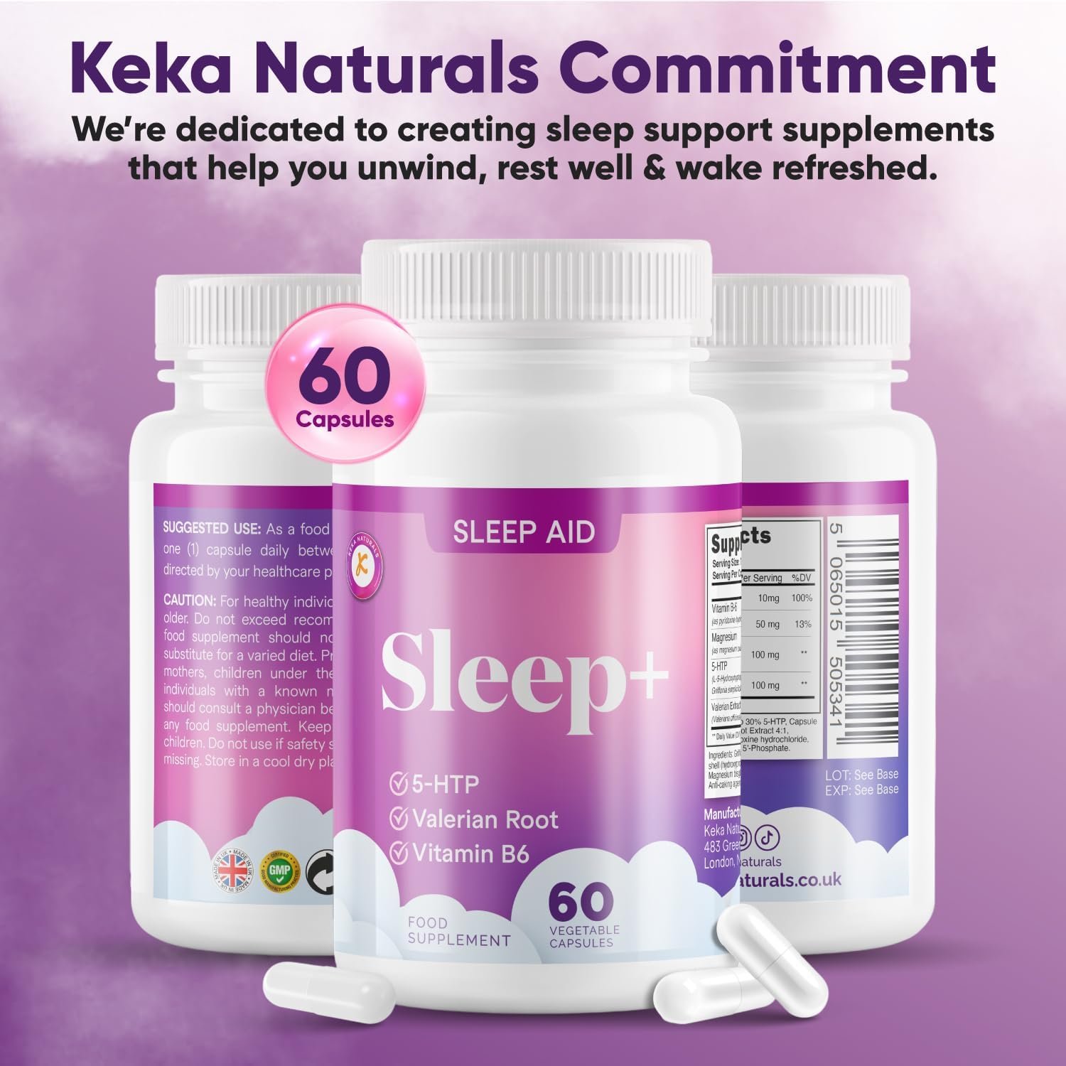 SUPPORTS RELAXATION & SLEEP: Keka Naturals combines 5-HTP from Griffonia seeds, valerian root, magnesium, and vitamin B6 to help you relax in the evening and encourage restful sleep.
