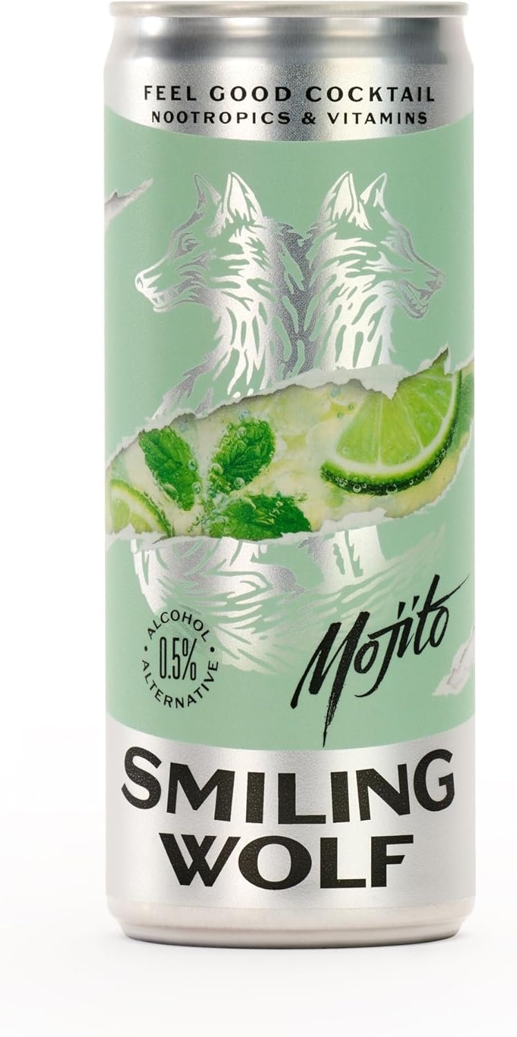 Smiling Wolf Feel Good Alcohol Alternative Ready to Drink Mojito 8x250ml | Alcohol Free Cocktail | Mood Enhancing Natural Nootropics & Vitamins