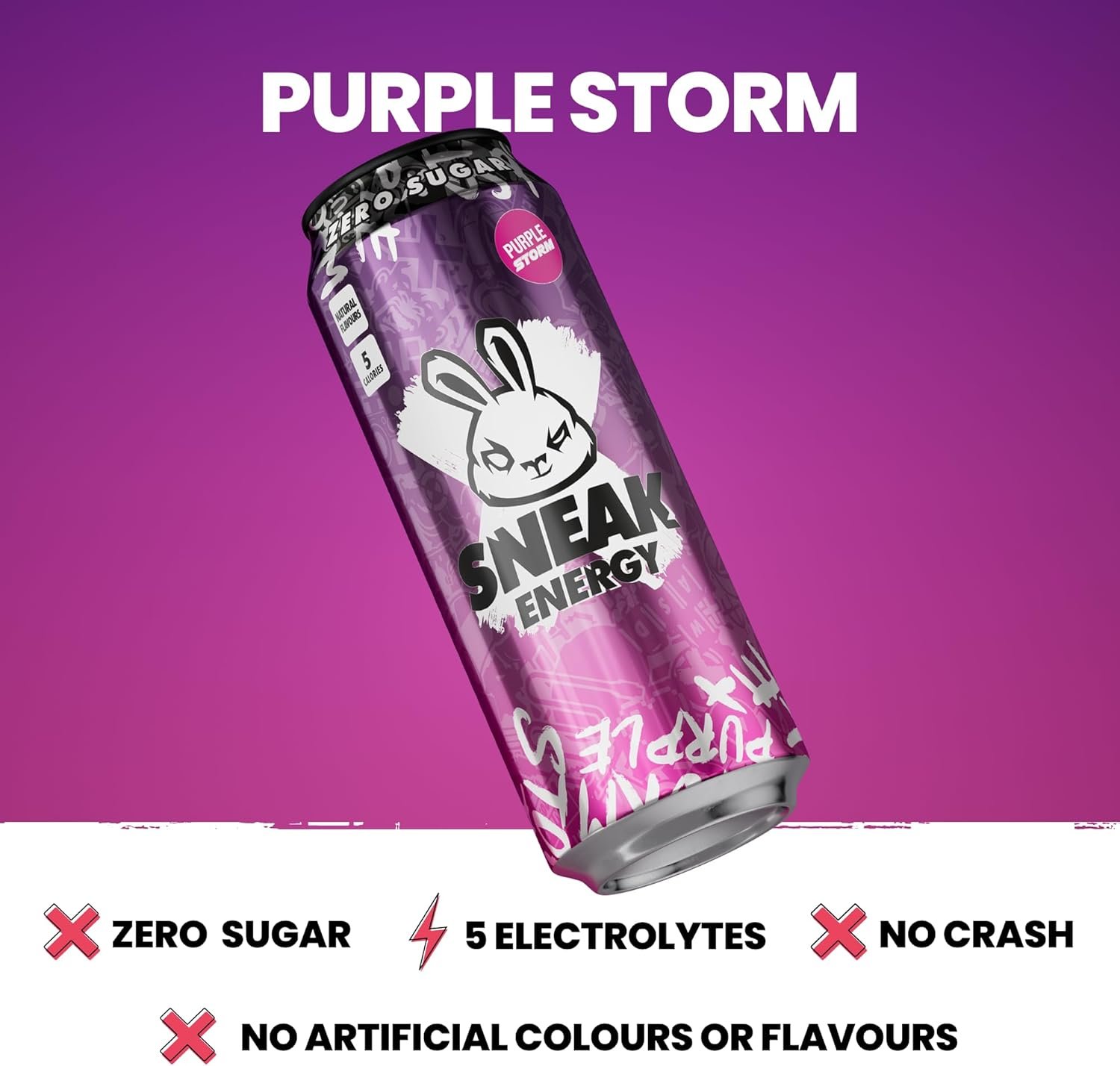 SNEAK | Cans Purple Storm | In-Game Focus Boost Energy Drink, Zero Sugar, Low-Calorie, Vegan | 500ml x 12