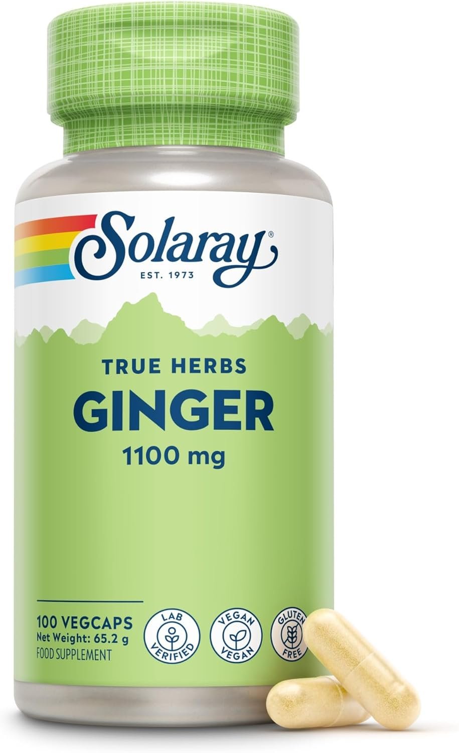 Solaray Ginger Root 1100 mg – 100 Vegan Capsules | High Strength Whole Root Extract | Natural Daily Wellness Support | Gentle, Non-GMO, Magnesium Stearate Free | Lab Verified