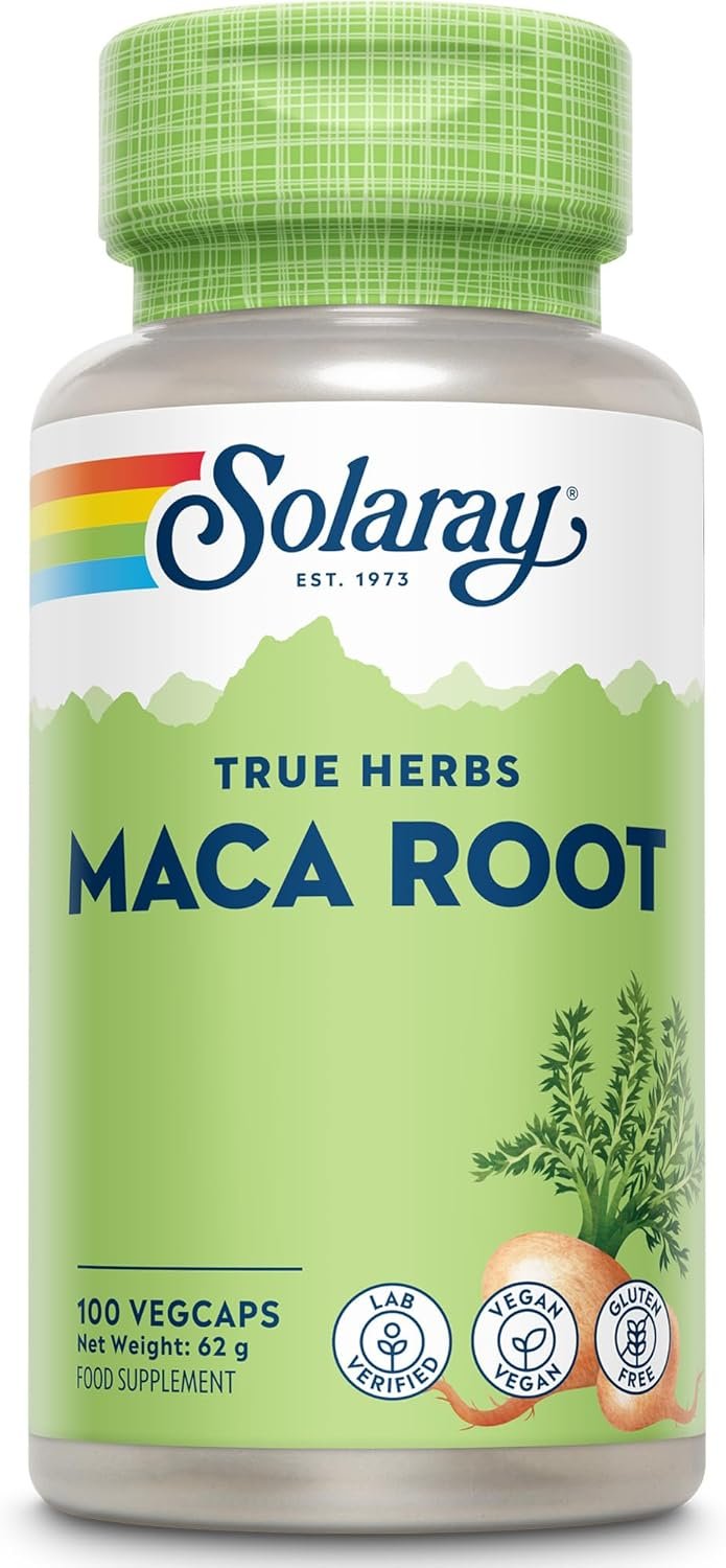 Solaray – Pure Maca Root – 100 Vegan Capsules – High Strength Peruvian Macaroot Extract Supplement for Women and Men – 3+ Month Supply – Lab Verified & GMO and Magnesium Stearate Free