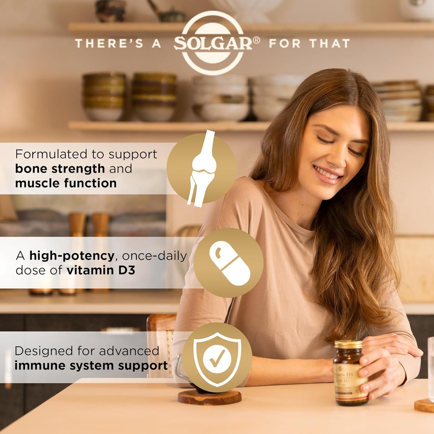 Solgar 4000IU Vitamin D3 – Healthy Teeth and Bones – Better Calcium Absorption – Pack of 120 Vegetable Capsules