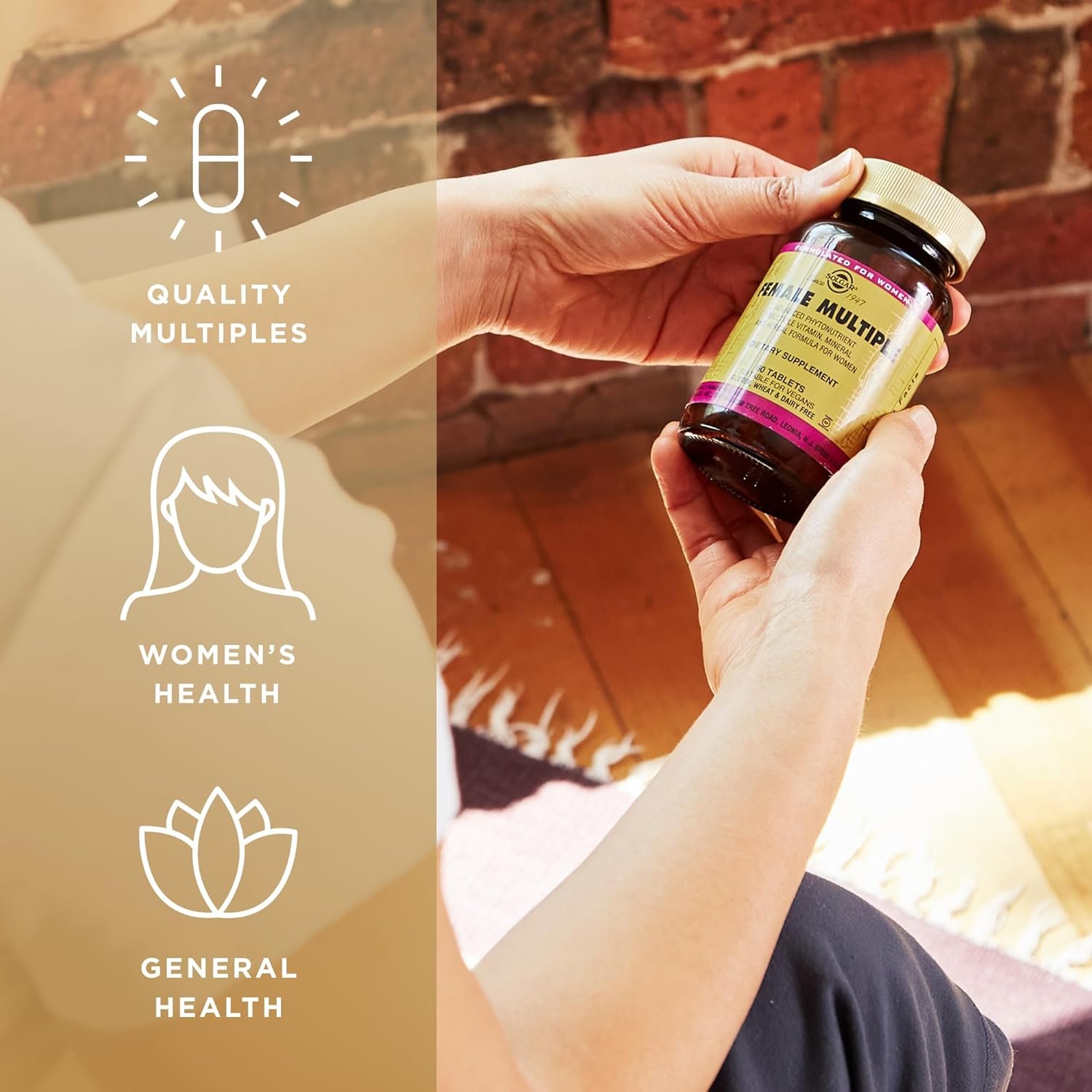 ✓ TAILORED FORMULA FOR WOMEN. Solgar Female Multiple is a unique tailored formula created to support women’s daily well-being. Containing an advanced combination of vitamins and minerals means you can go about your busy life and not having to worry about getting all the nutrients you need with just 3 tablets a day