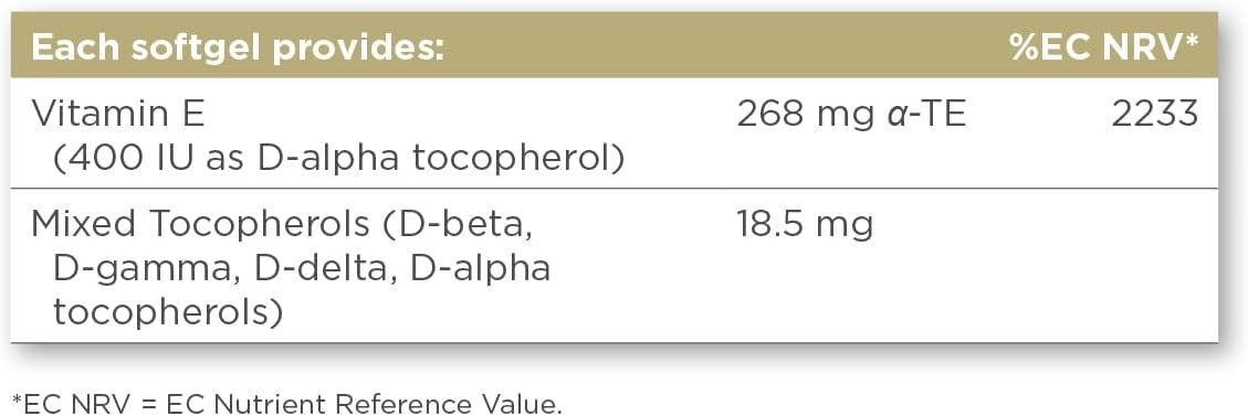 FIGHTS FREE RADICALS; Natural Source Vitamin E comes in vegetable softgel form to support the absorption of this fat-soluble nutrient. This ensures your body gets the support it needs to protect the cells from oxidative stress caused by free radicals