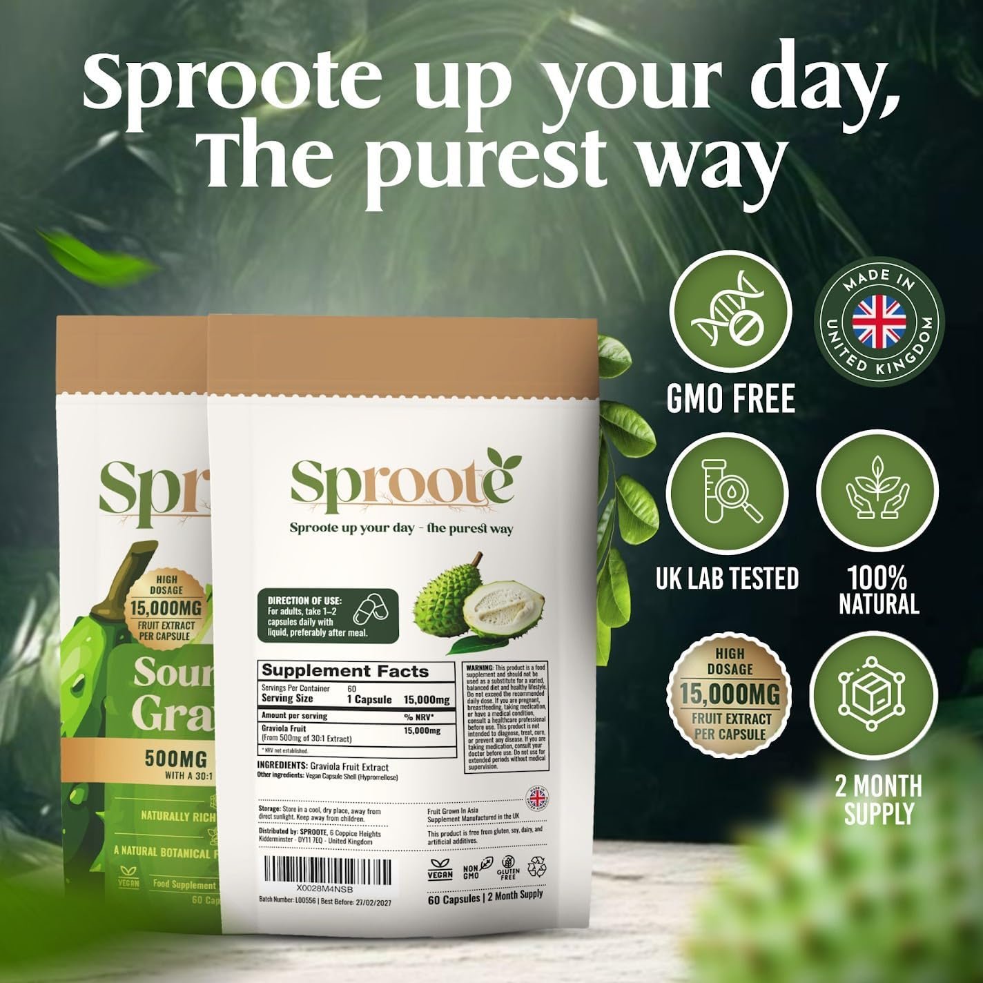 🌍 Sustainable & Ethically Sourced – Sproote Soursop is carefully and responsibly harvested to protect both the environment and local communities. We prioritize ethical farming practices and sustainable sourcing, ensuring you receive a pure, natural supplement that supports not just your health, but also the ecosystems and growers behind it.